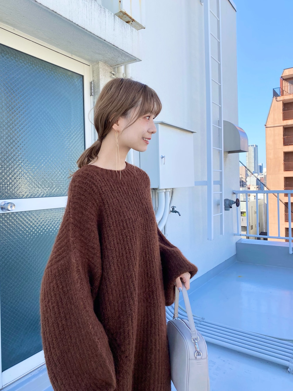 ボリュームニットミニワンピース