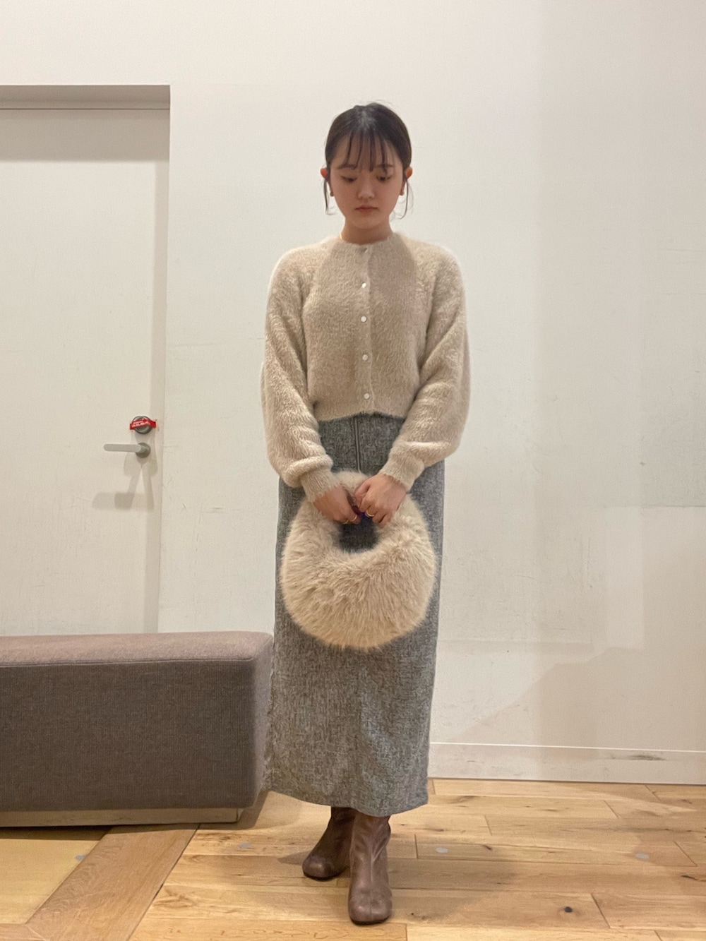 スカートはツイード生地を使用していて冬らしい綺麗めコーデにぴったりです♡
