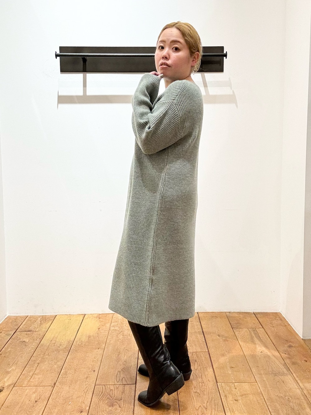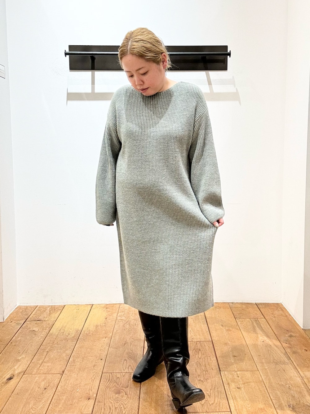 肌あたり優しいニットはシンプルな形ですが