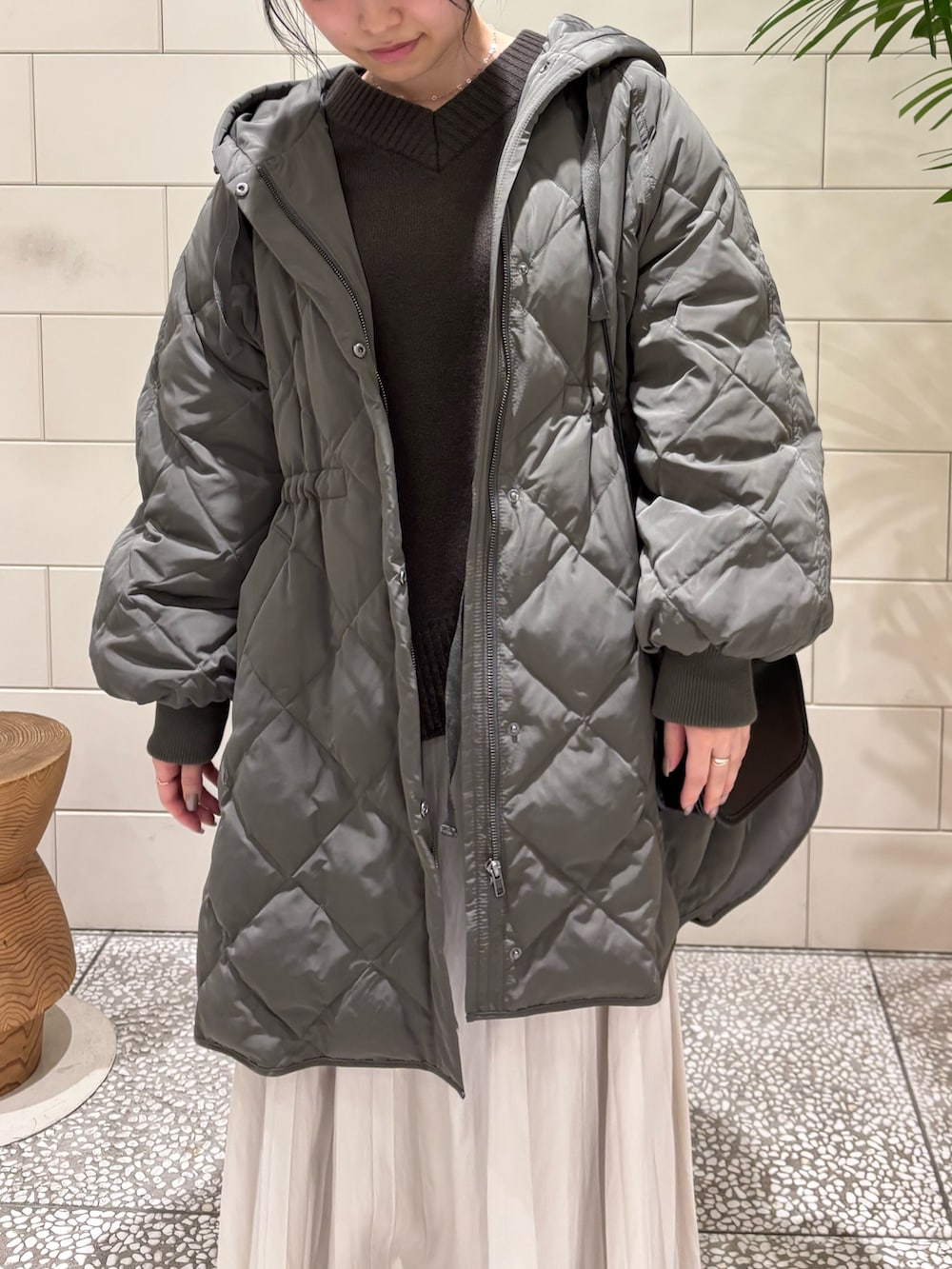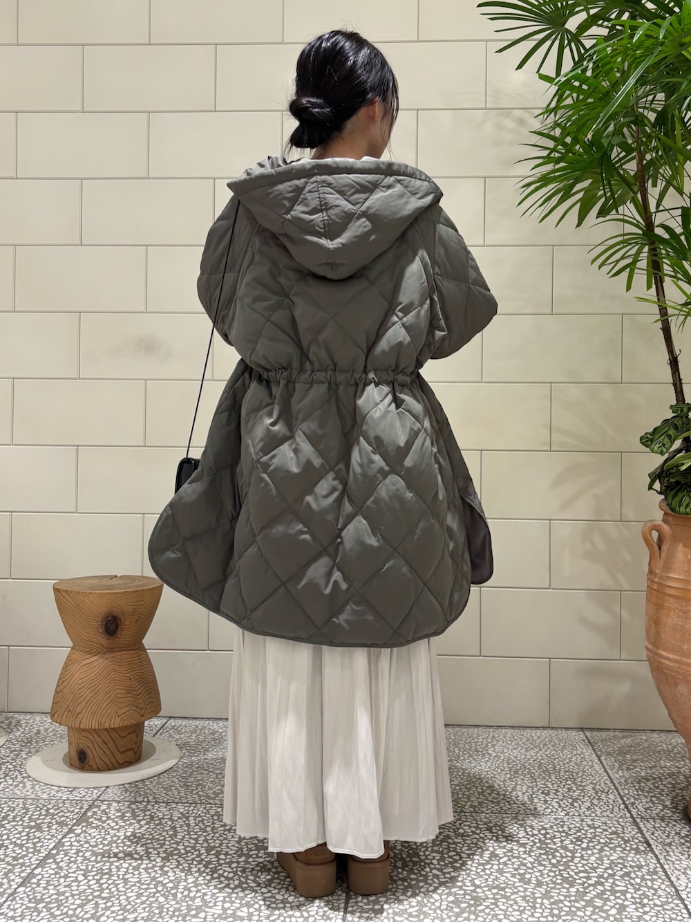 ウエスト部分に絞りが付いているのでシルエットをお好みで変えていただけます。強めに絞ると可愛らしい雰囲気になります。撥水機能付きで機能性も抜群です。