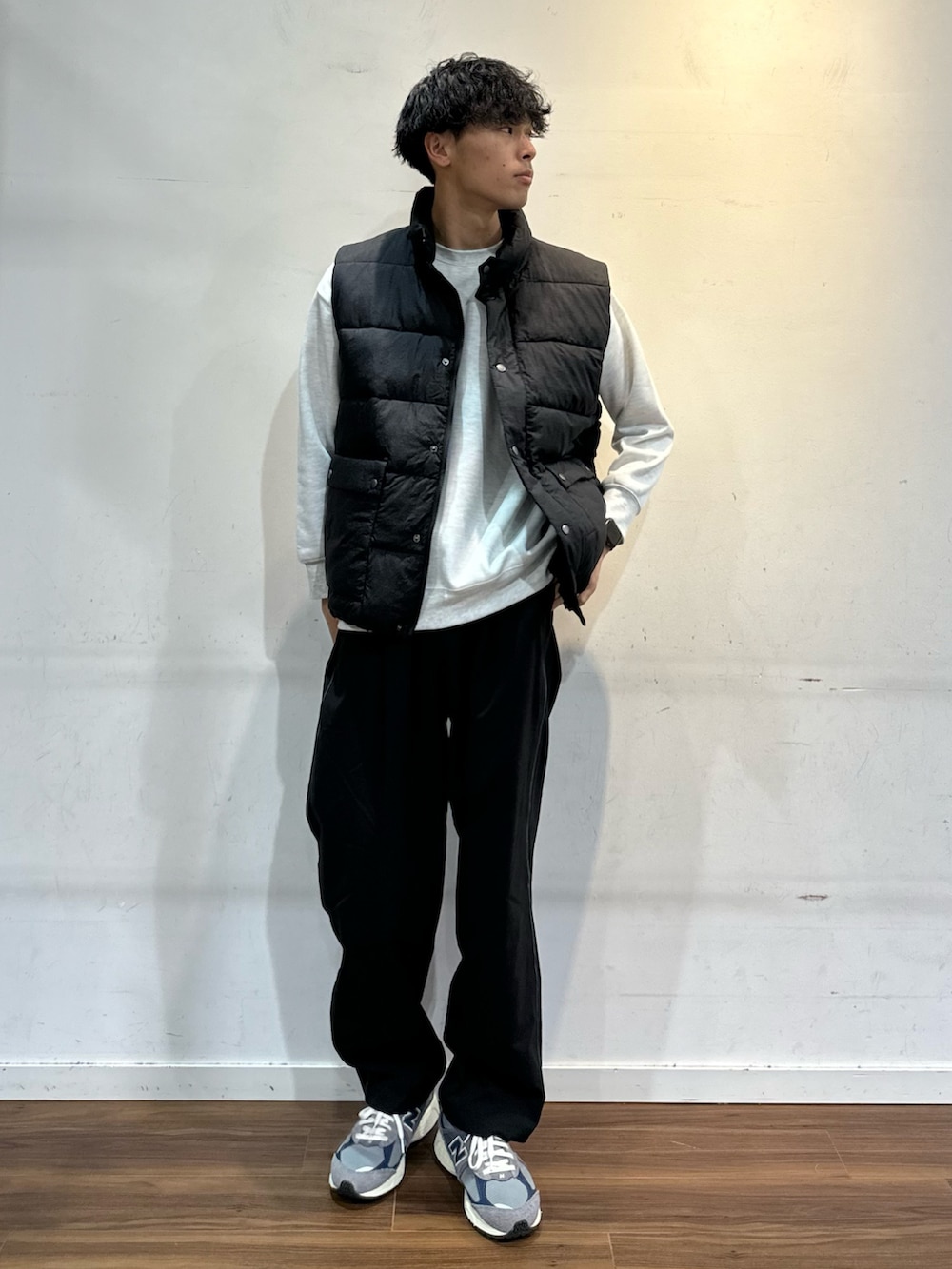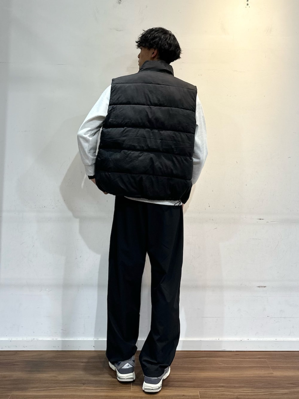 中綿ベストメインにカジュアルスタイル。