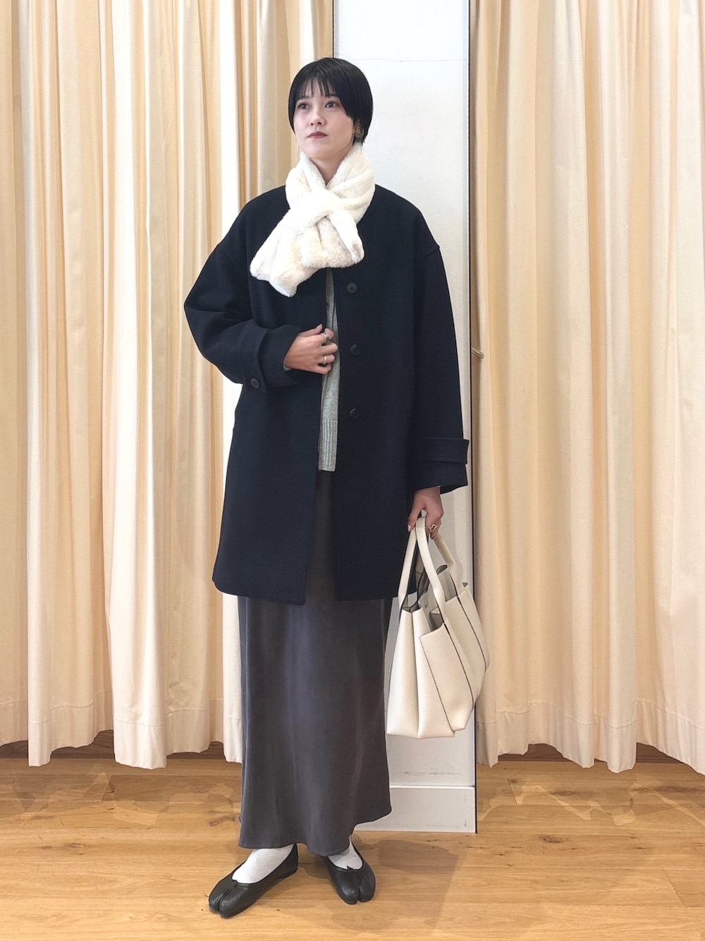 店頭入荷待ってました✨スタンドカラーは開けて着るのも可愛いです✨裏地なしですが、サイドスリットもあり、しっかりインナーを見せてレイヤード遊びで重ねるコーデを楽しめそうです😊