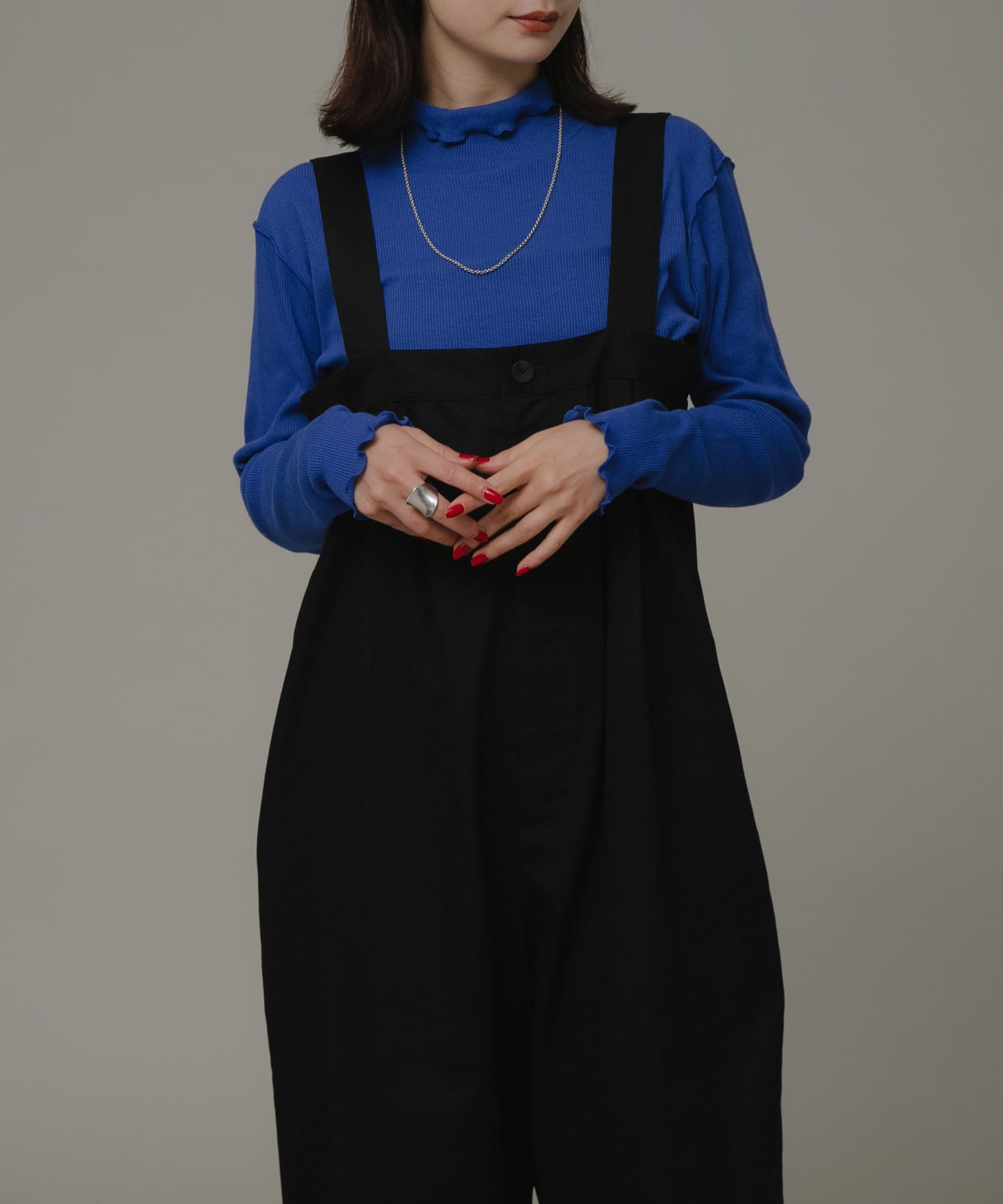 サロペットは、ゆったりとしたサイズ感で、インナー次第で、オールシーズン着ていただけます。