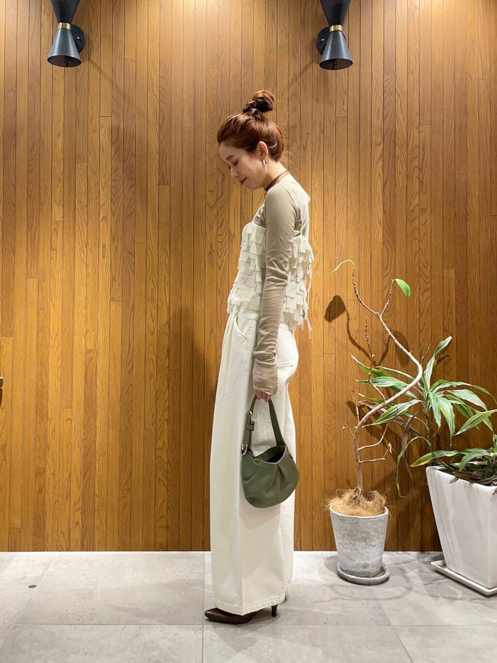 コンパクトなトップスで合わせると