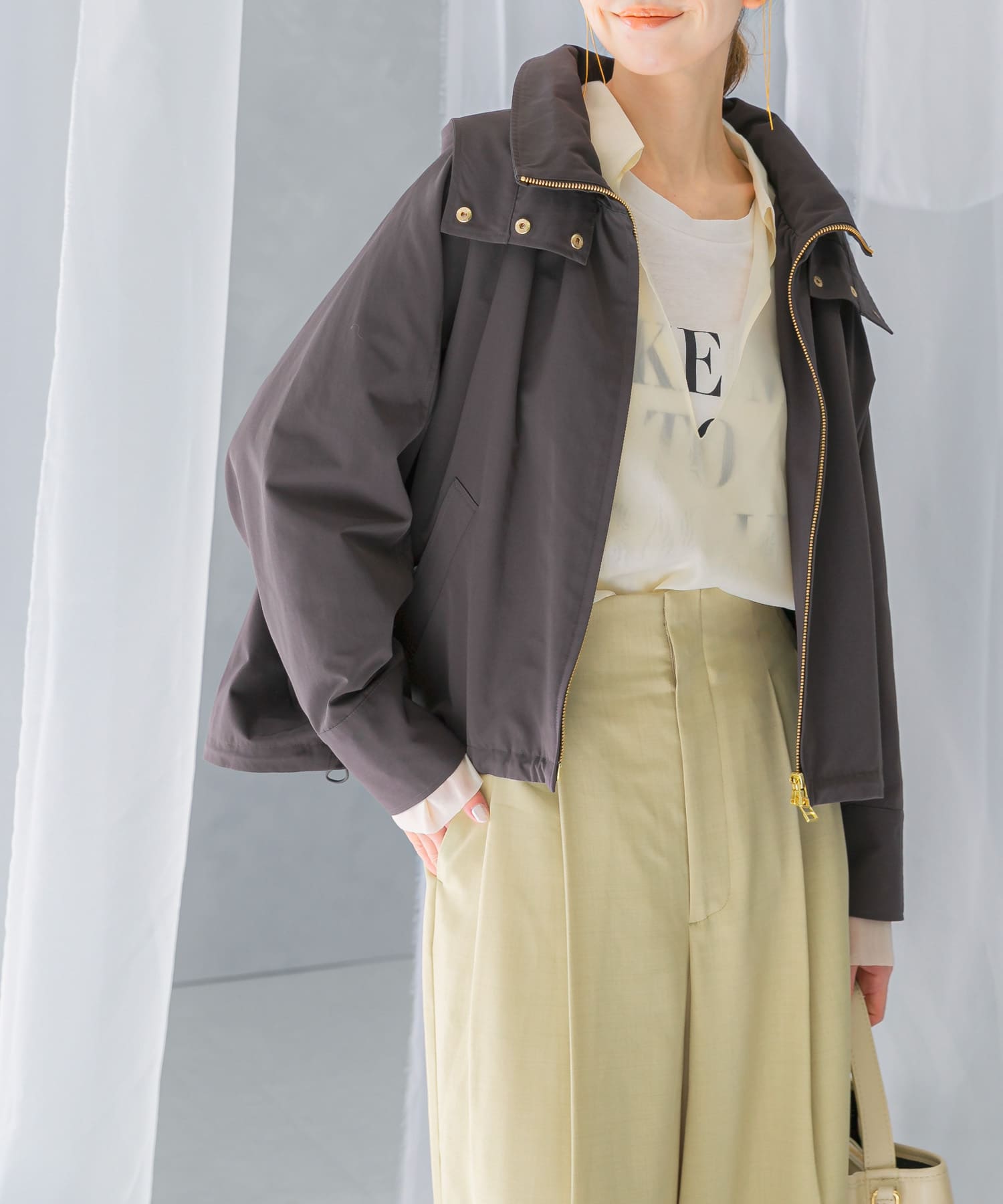 大きめのフードでカジュアルライクですが、ゴールドジップやシルエット変更が可能な