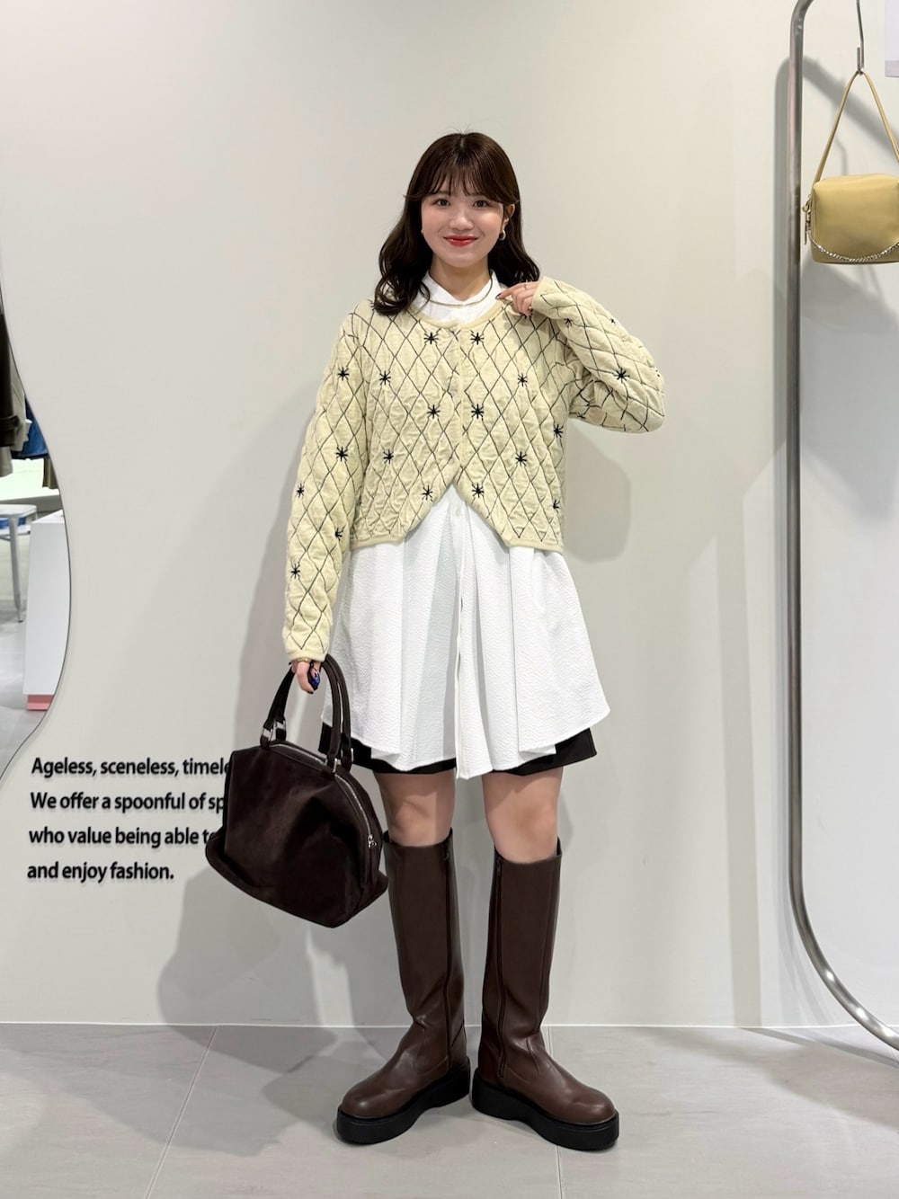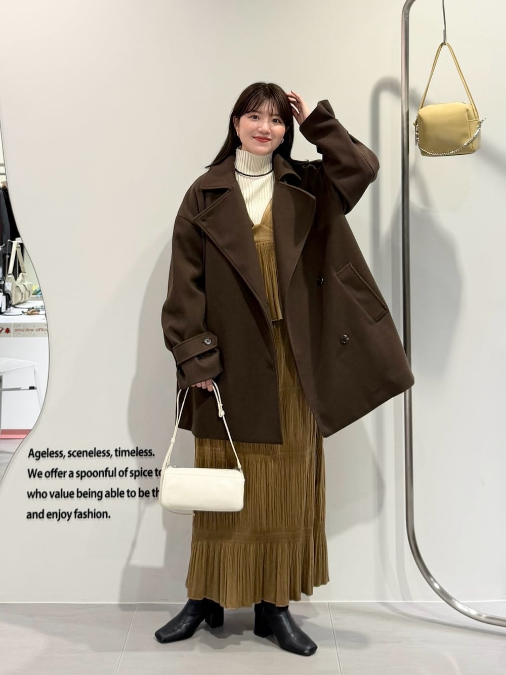 大人コーデを意識してボトムにはスラックスをチョイスしました!