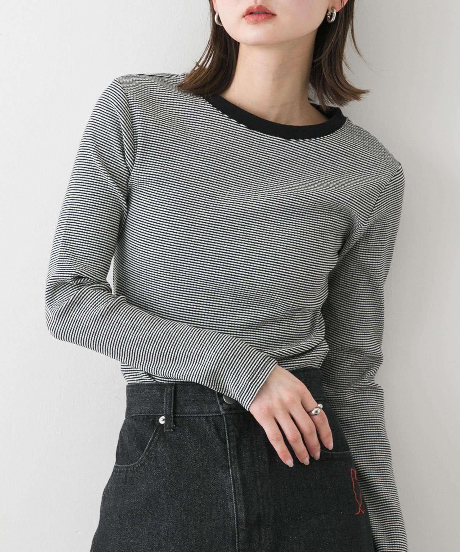 SENSE OF PLACE『WEB限定』クルーネックリンガーボーダーTシャツ- カラー: