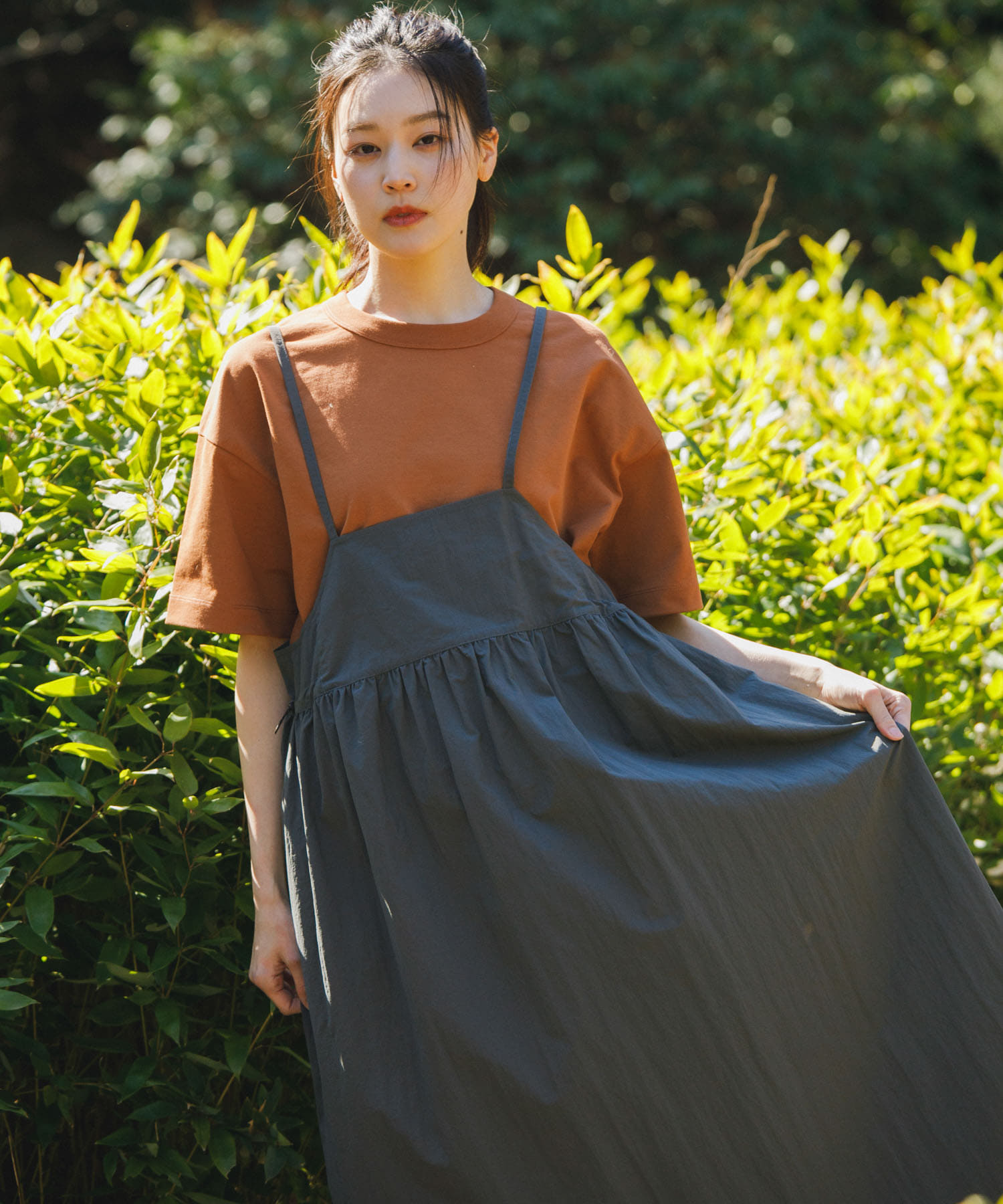 個人的にEKALのナイロンタッサーキャミOPは去年からリアルバイ検討中です。リネンやコットンが多くなる季節に、異素材ミックスコーデで合わせたら絶対可愛いと思います✨胸下のドロストや肩紐アジャスターはスタイリングをする時に重宝する大事なポイントです。