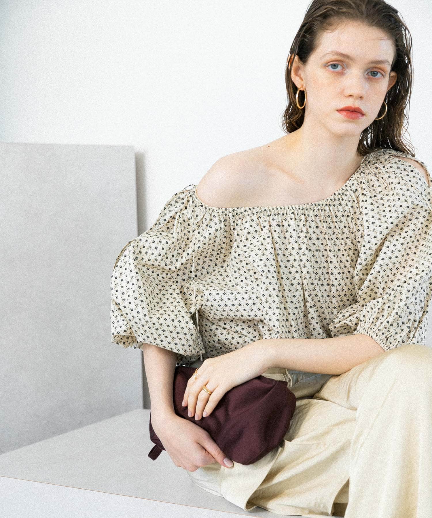 春っぽいアイボリーカラーを方のボタンを開けてヘルシーに肌見せできる着方をしています!