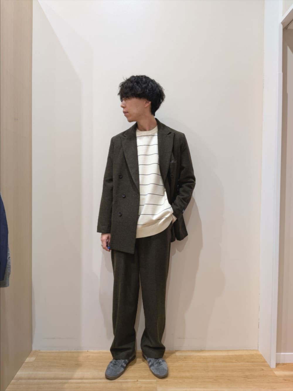 パンツはタックの入った綺麗めなスラックスになります。