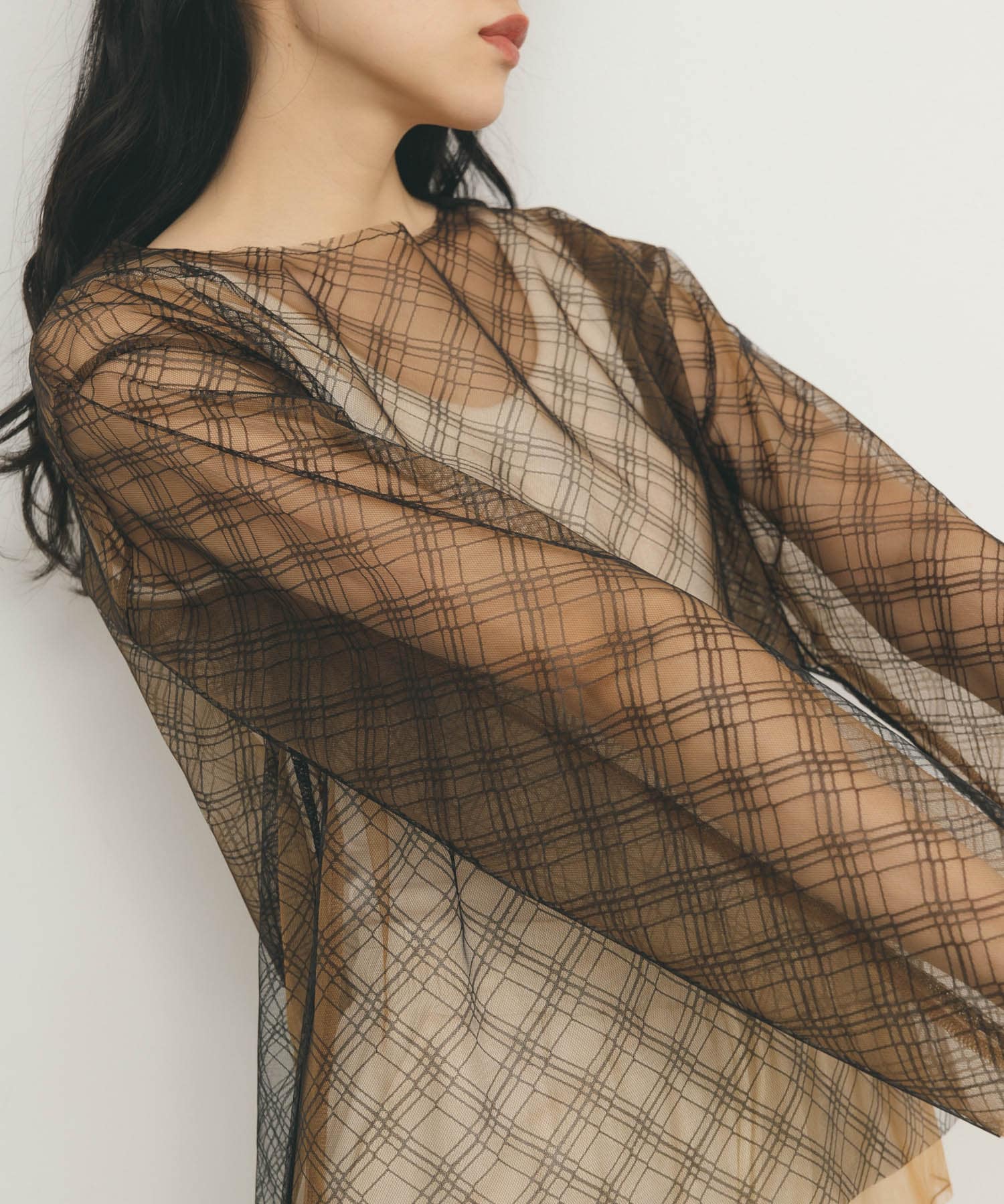 リバーシブルレイヤードチュールカットソー