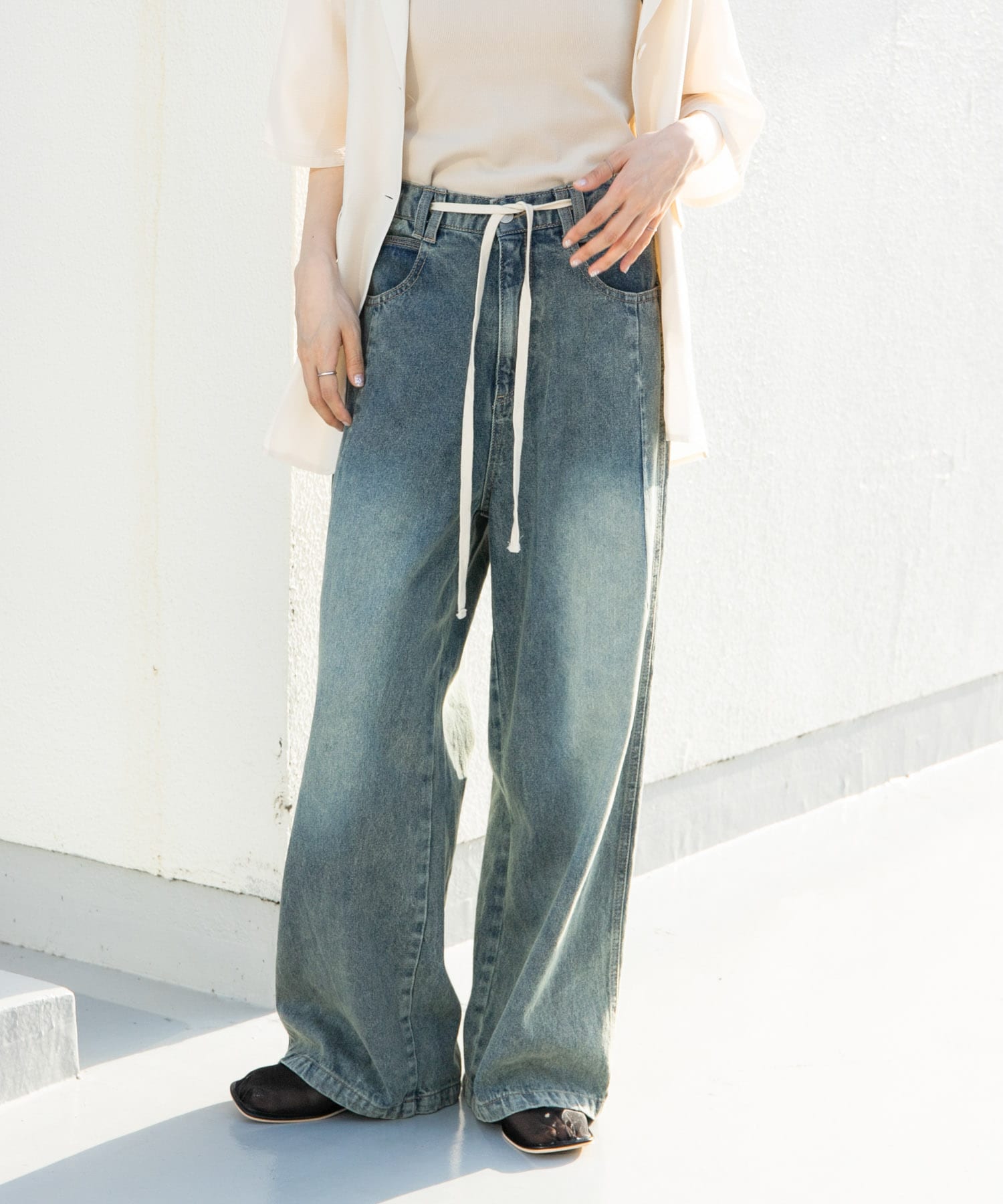『2サイズ展開』ドローストリングデニム