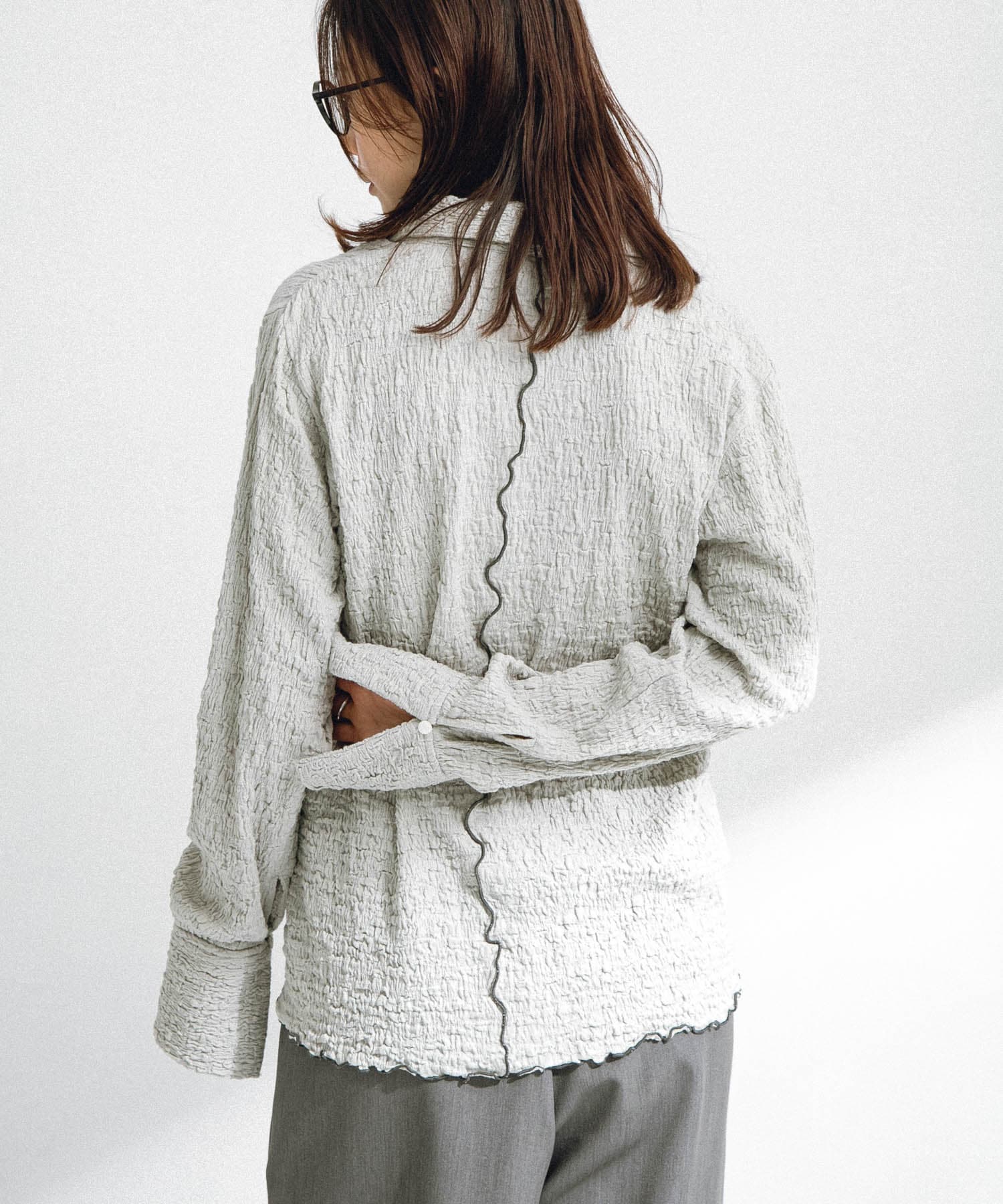 たっぷりとボリュームのある袖と、胸元のギャザーデザインがシンプルながらに華やかな印象にしてくれます。
