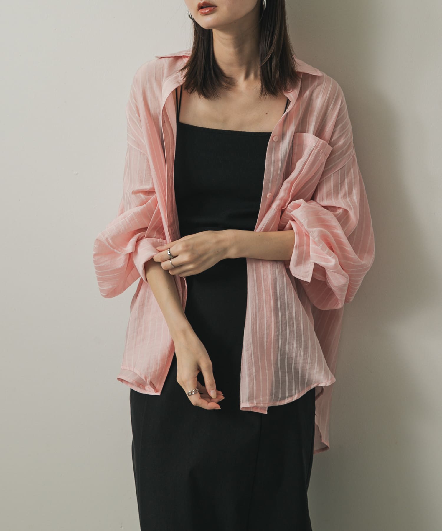 SENSE OF PLACEタックポケットシアーストライプシャツ- 着用カラー: