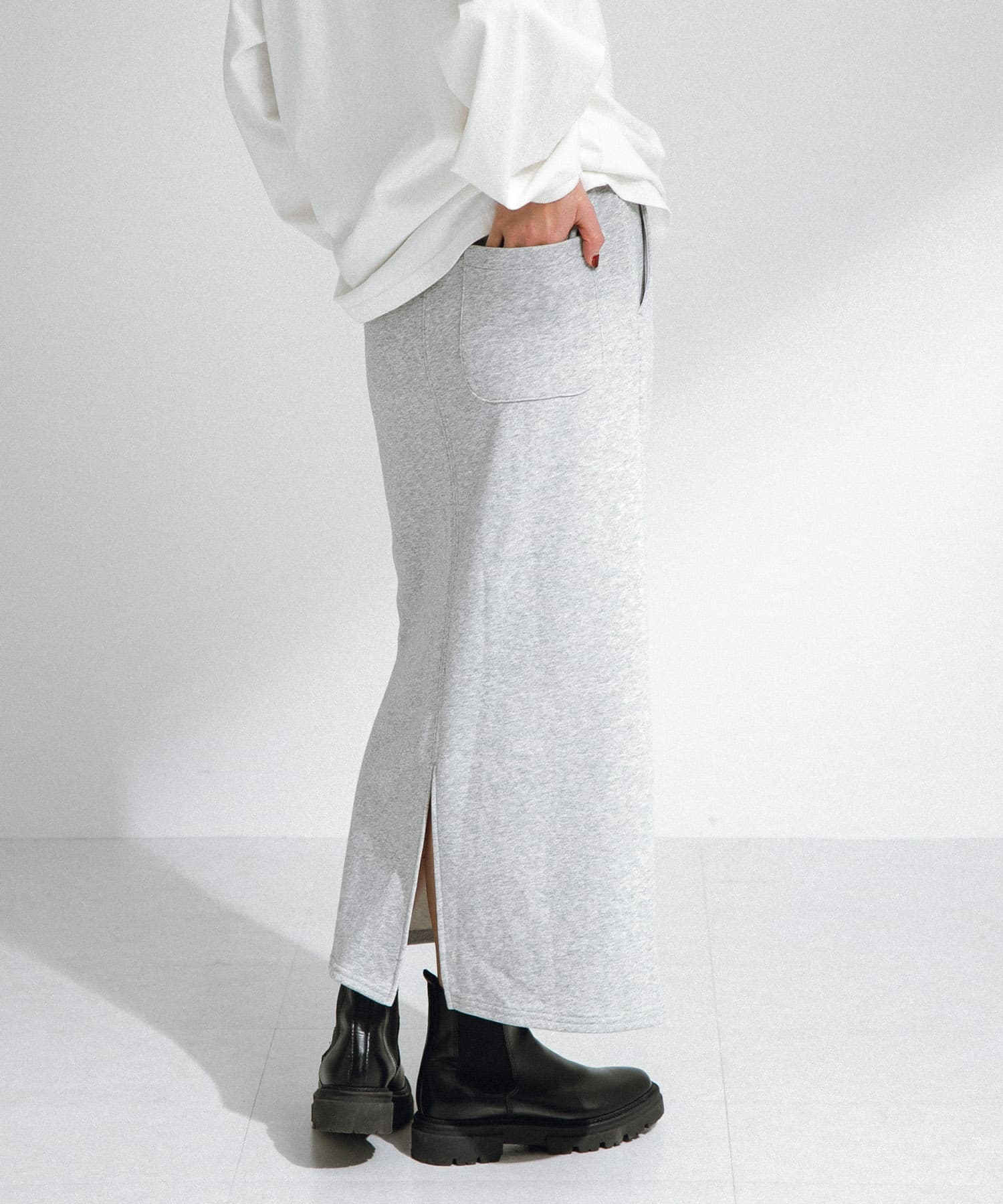 スウェットのスカートは、スッキリとしたシルエットですが、穿き心地が良いのがポイント。