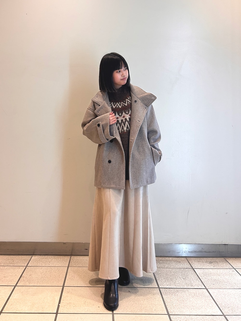 ニットが丁度良い長さなのでボトムスによってインをしたり出したりしても合わせやすいトップスとなっています⟡.·