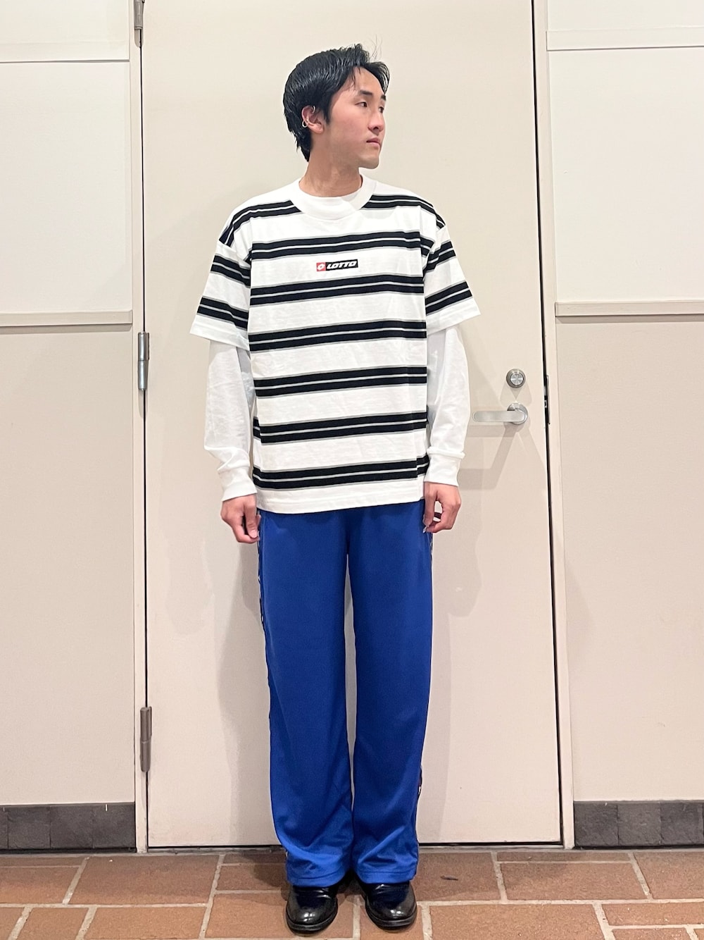 真夏でも着れるパンツ。夏はプリントTと合わせてカジュアルに着るのもありかと。(長袖シャツとパンツば同生地です。)
