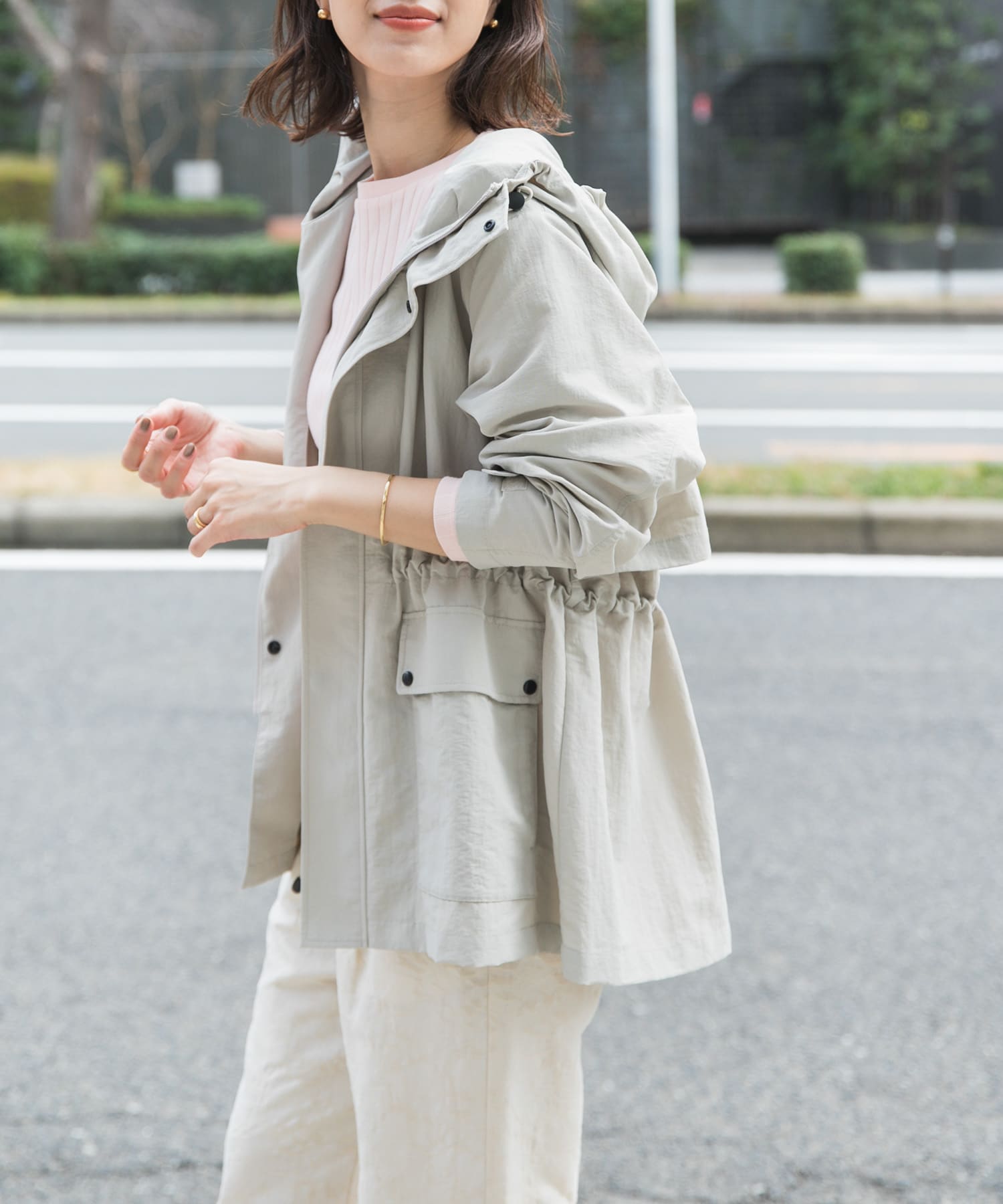 スッキリとした丈なのでパンツにもスカートにも合わせやすいです。