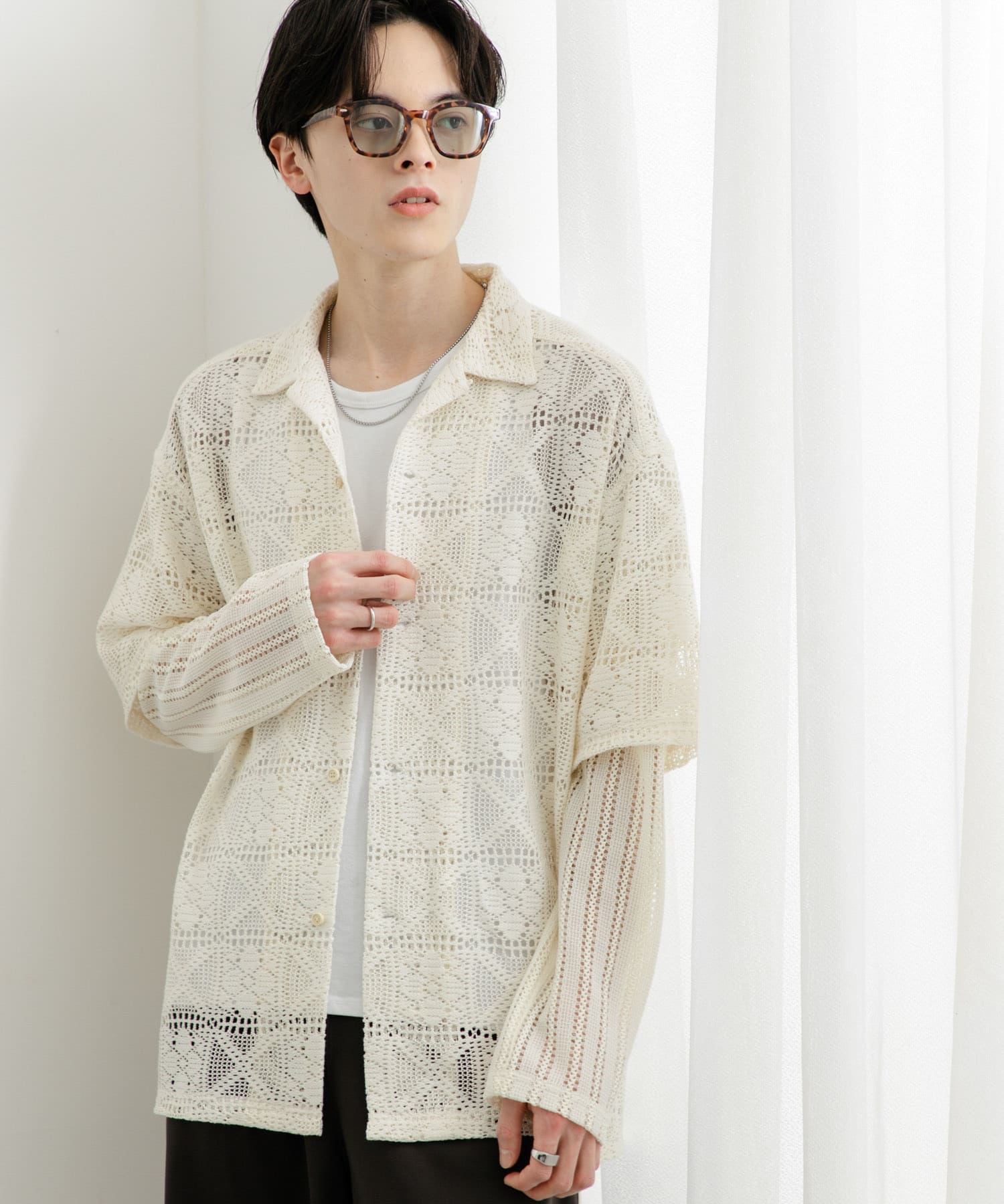 レースフェイクレイヤードロングスリーブシャツ