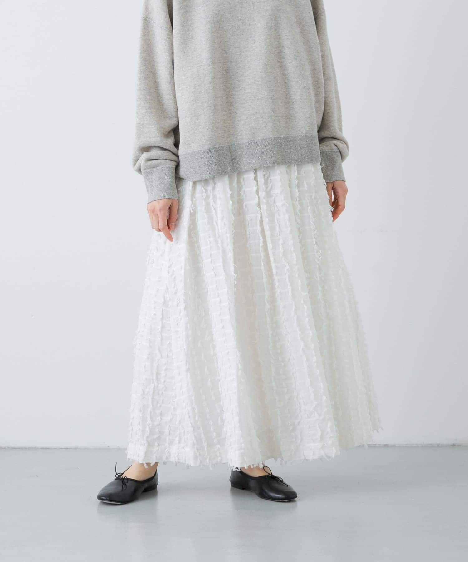 新作のフリンジカットジャガードスカート、とってもこだわりを感じる生地感で可愛いです。