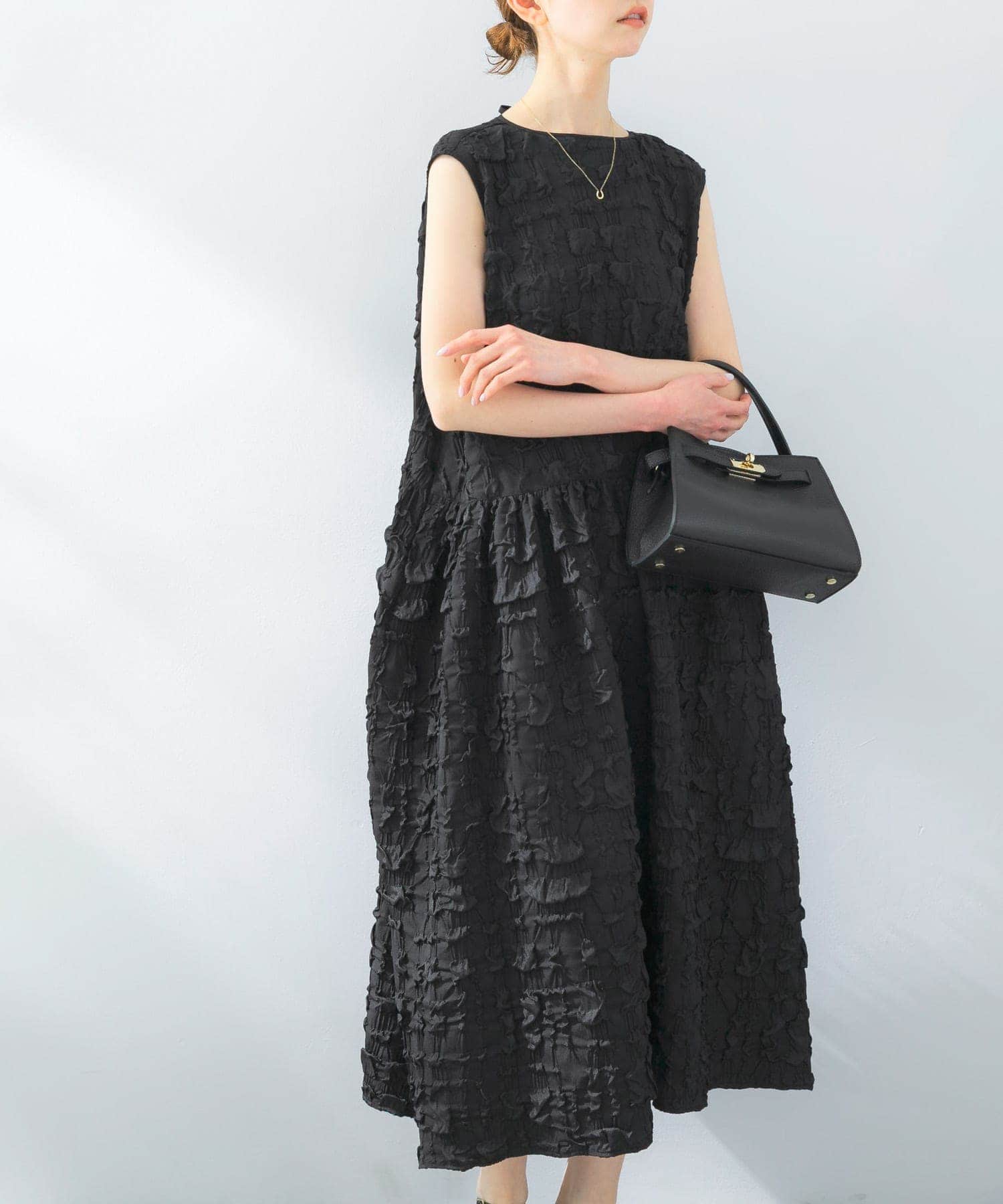 バックリボンジャガードフォルムワンピース