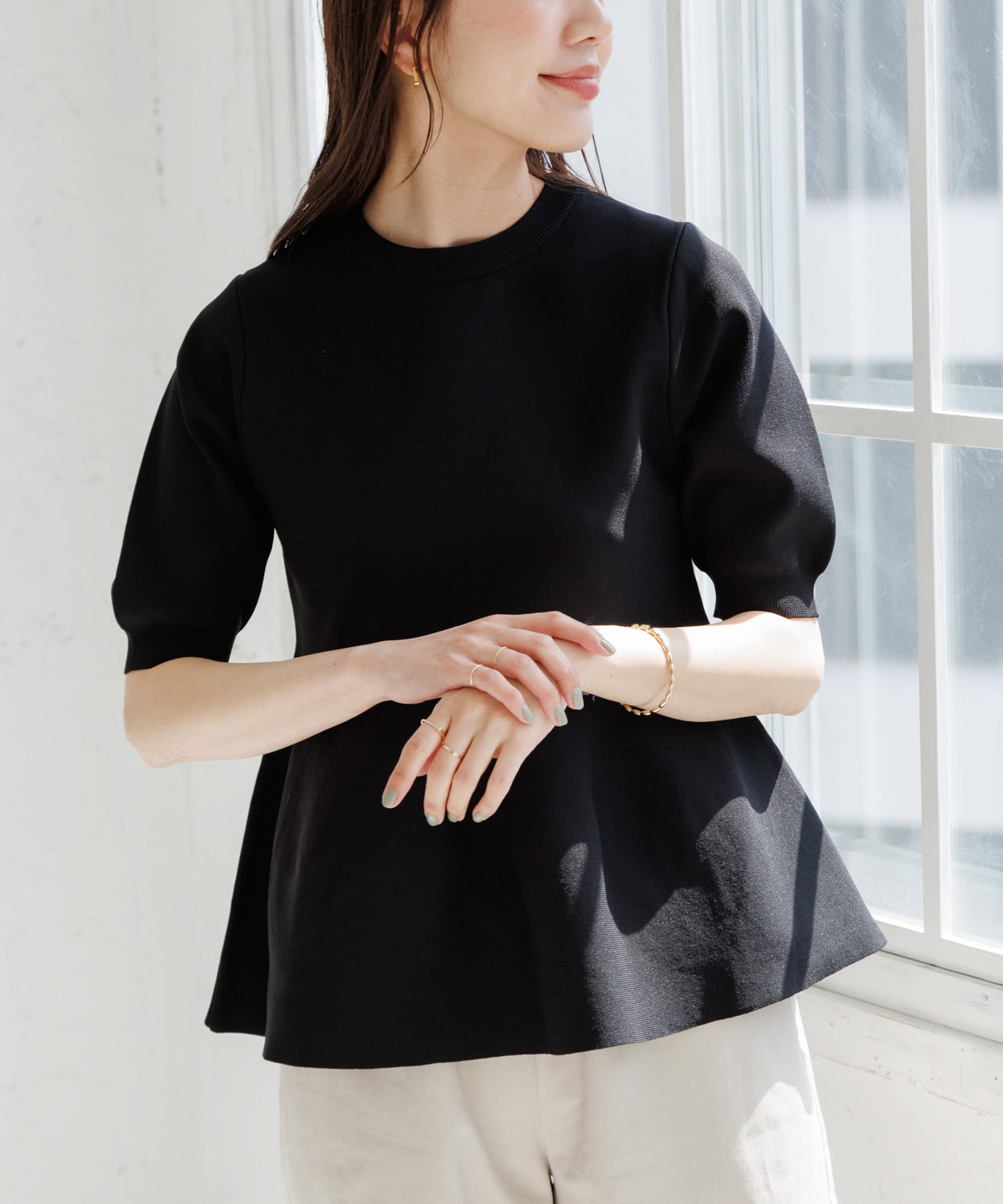 『WEB限定』ペプラム半袖ニットプルオーバー