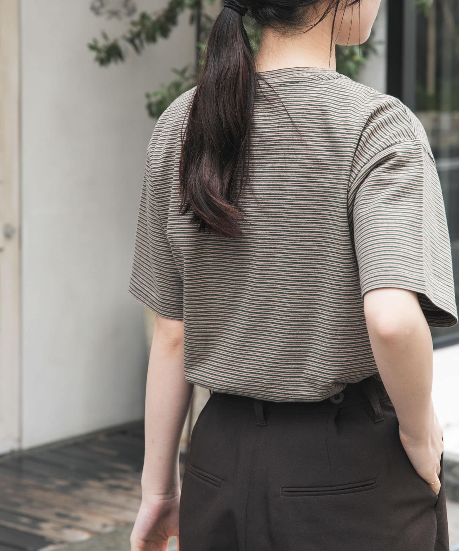 今回は、ボーダーTシャツに、Healthy denimのワイドパンツを合わせて、レトロなコーディネートにしてみました。