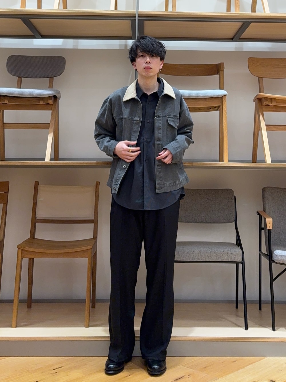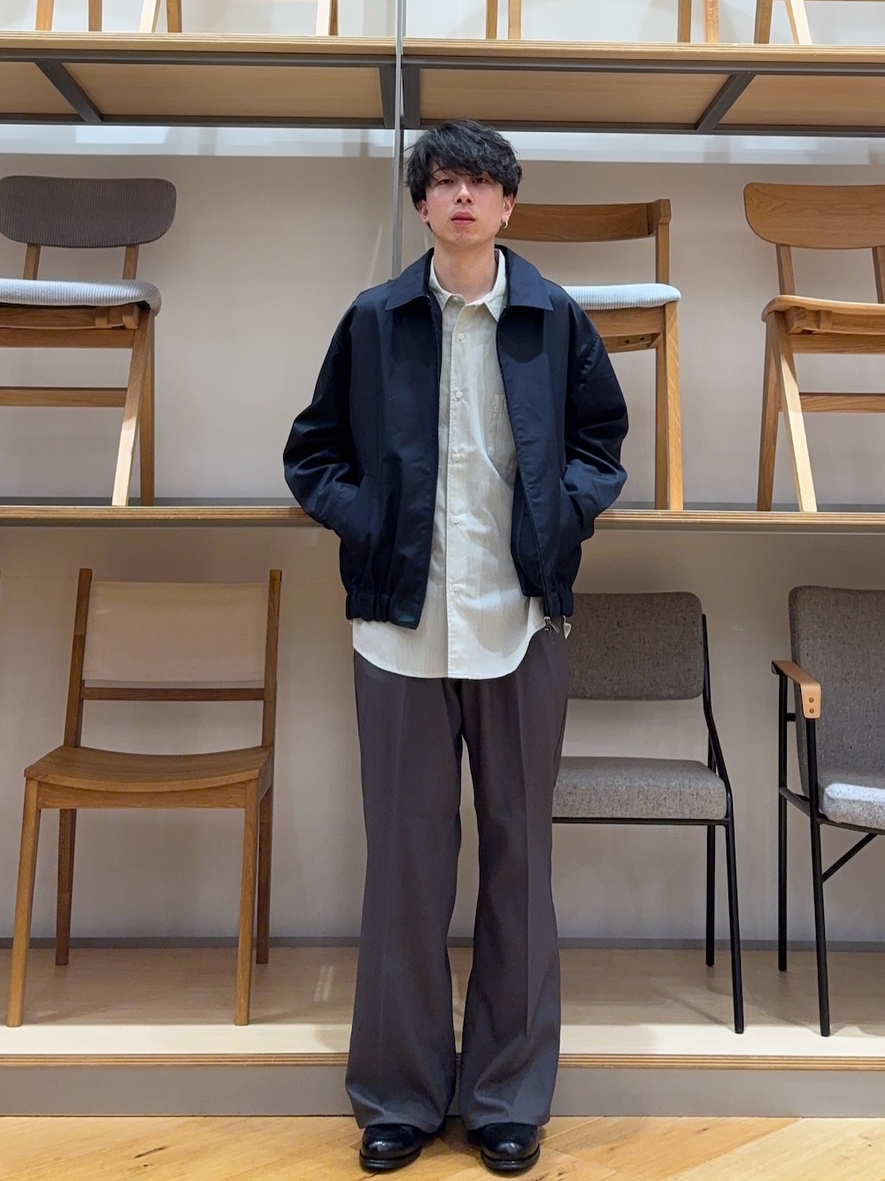 これからの季節着たいネイビーのポロシャツとワイドパンツです。Tシャツよりも綺麗めな雰囲気なポロシャツおすすめです。サンダルはOOFOSです。最初は履き心地が独特な感じがしますが、少し履き慣れてくるとすごく履きやすいです。これからの季節おすすめです。
