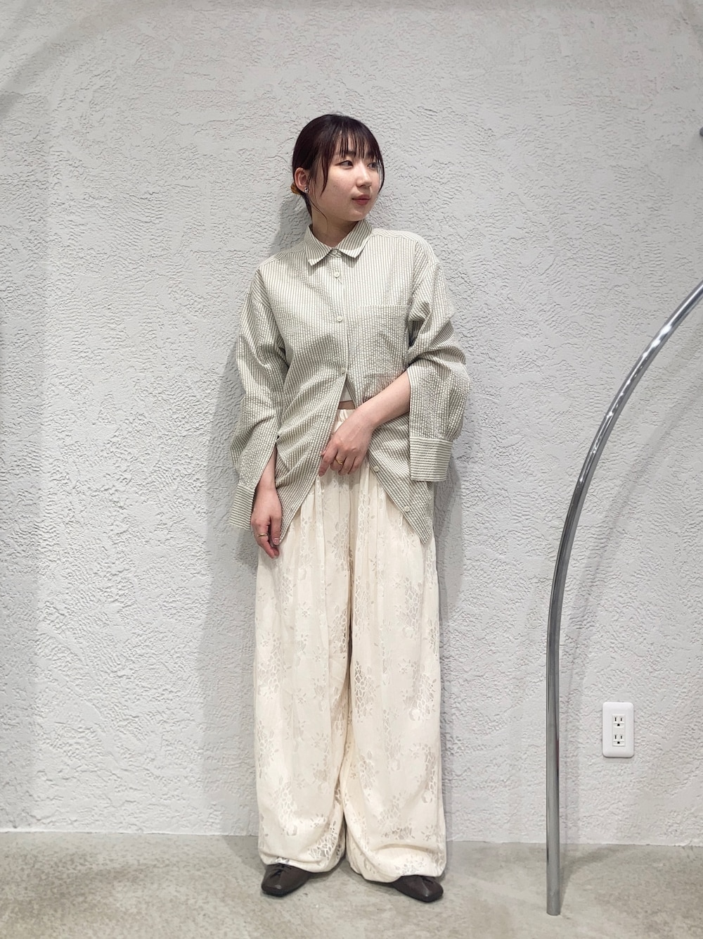 足元はシルバーのパンプスで夏らしく。