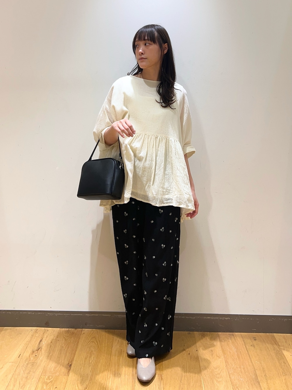 赤い刺繍がかわいいブラウスは1枚で華やかに💐