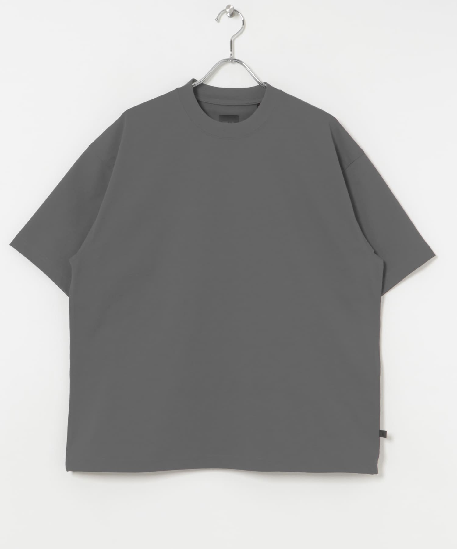 ハリ感のあるヘビーウェイト素材と、裾のドローコードが特徴のテックTシャツ。