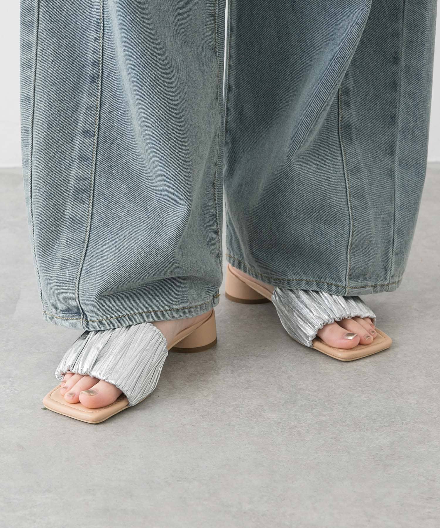 スクエアトゥメタリックギャザーサンダル