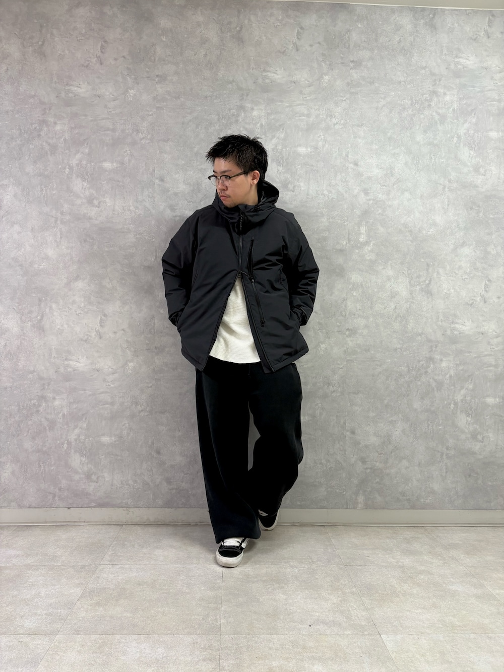 今回はARCHIのテーパードパンツを合わせたカジュアルなスタイリングに。
