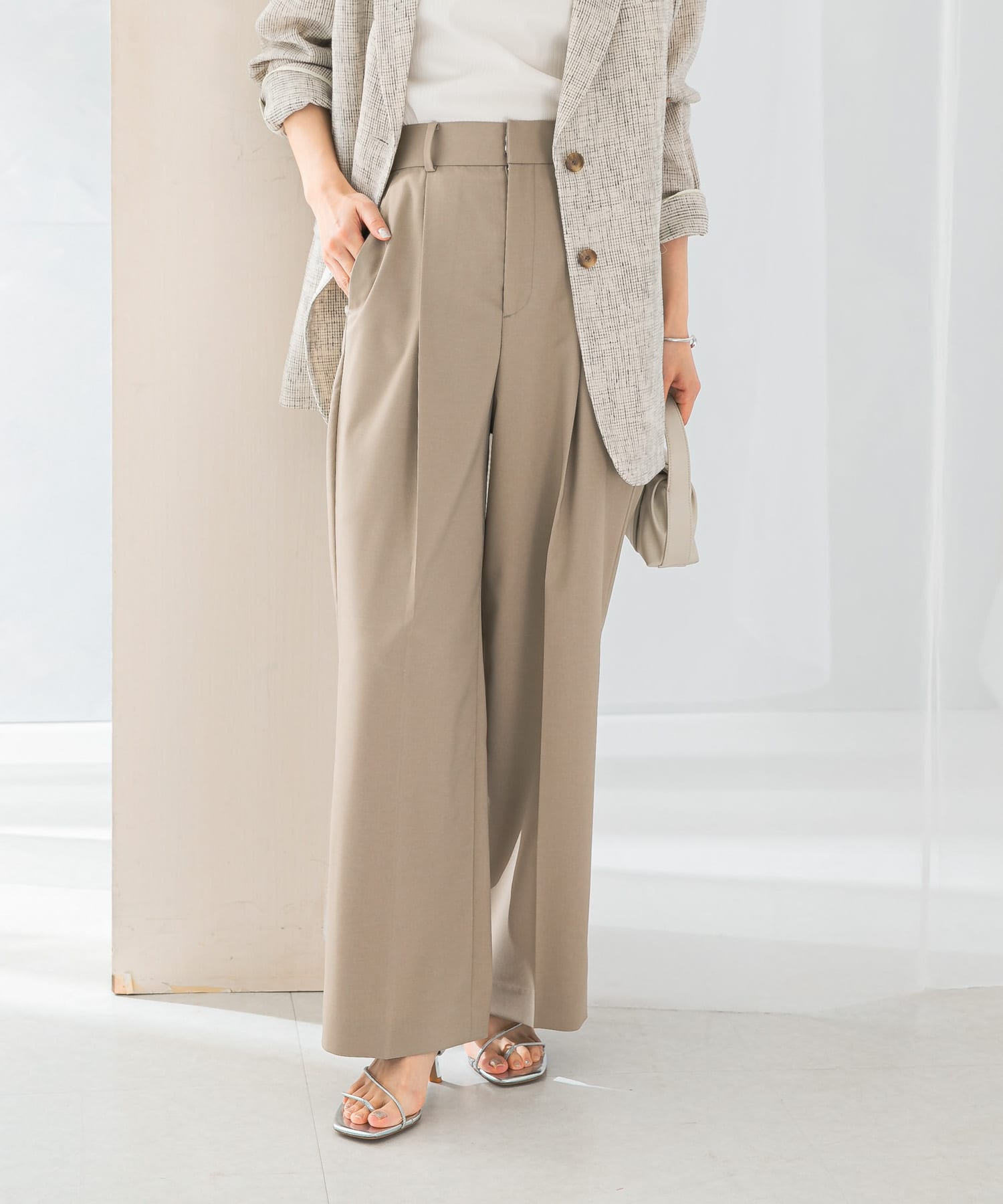 防シワハイウエストワイドスラックス