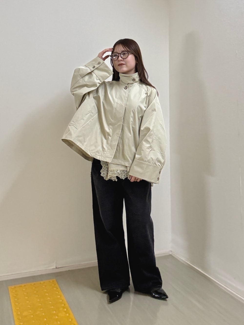 スタンドカラーが気になる方は襟を折って着てもかわいいです!
