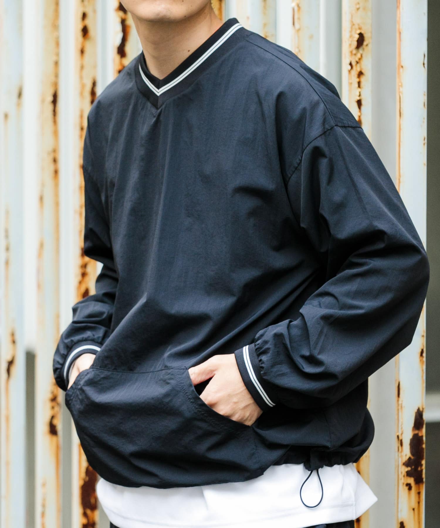 ITEMS『セットアップ対応』ナイロン ラインリブ ドロストプルオーバー