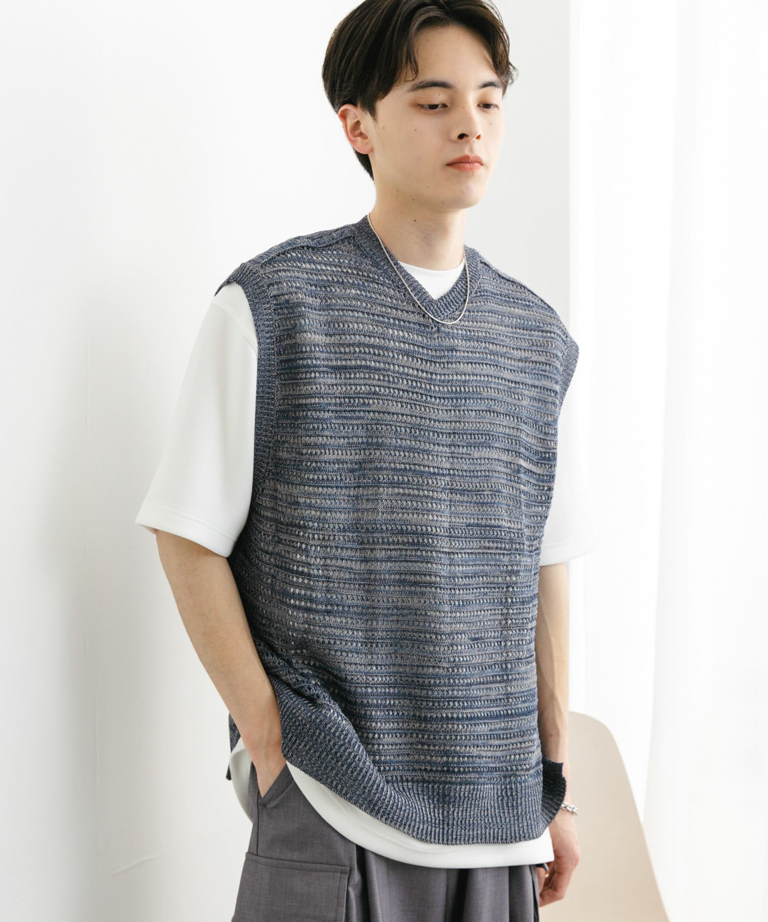 SENSE OF PLACEミックスメランジVネックベスト- 着用カラー: