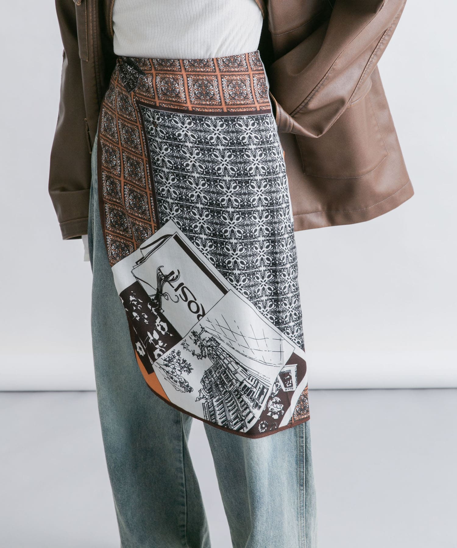 KBFフラワープリントビッグスカーフ- 着用カラー: