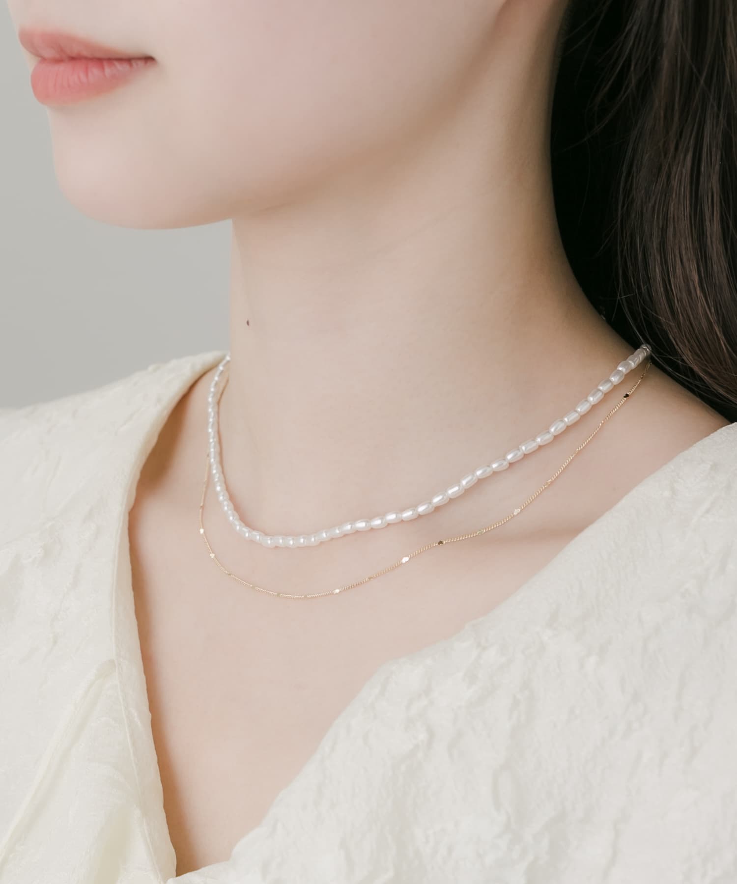 パールハートチェーンレイヤードネックレス