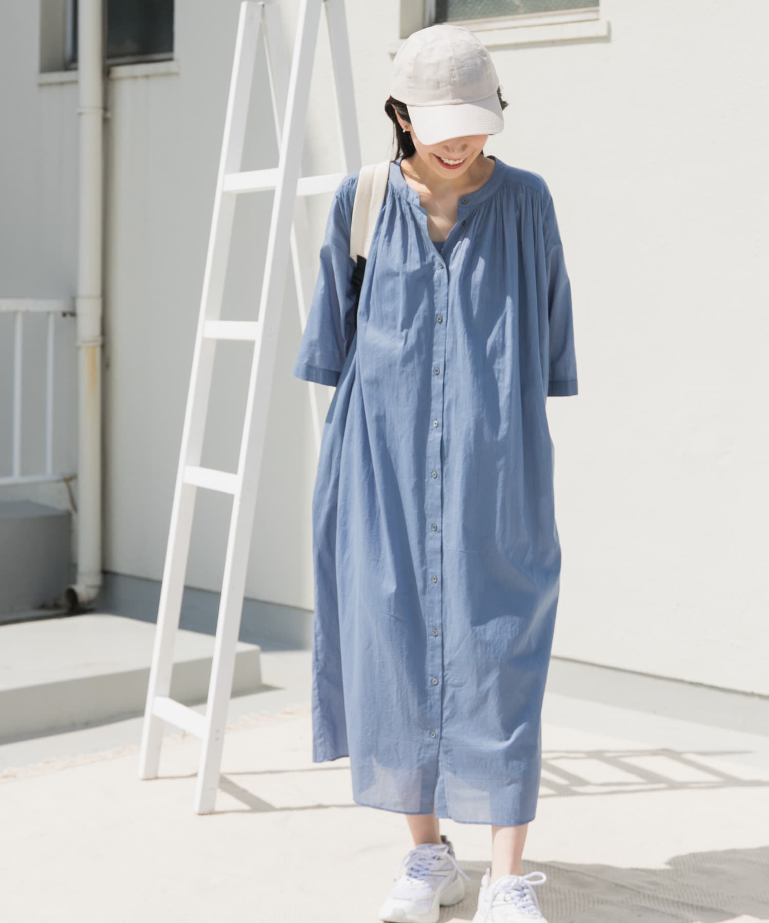 コットンボイルロールアップハーフスリーブワンピース