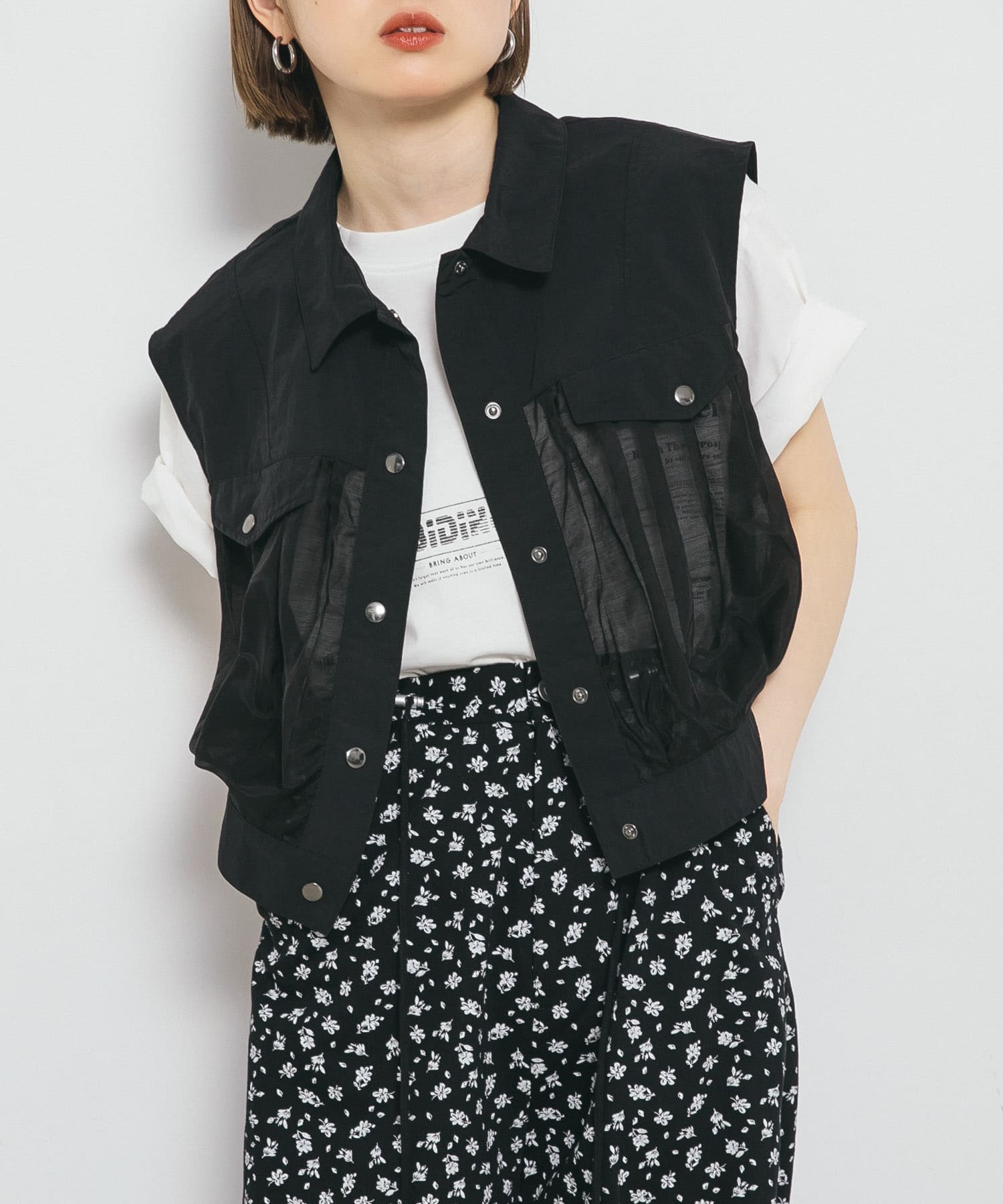 ベストをプラスワンするとさらにおしゃれ見えするのでおすすめです😊