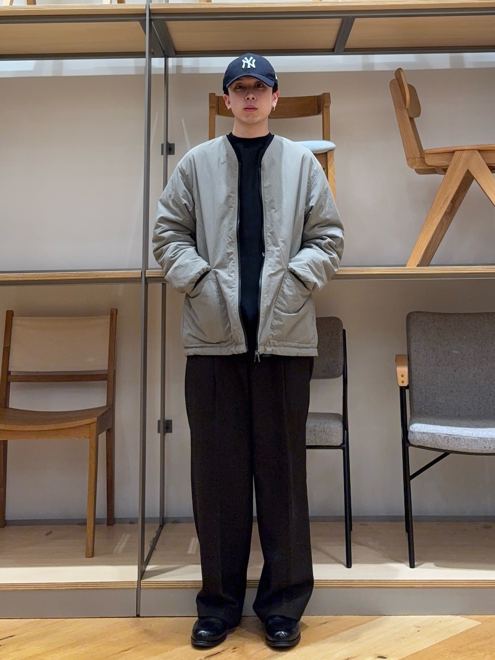 キジマタカユキのキャップはシルエットが洗練されていてかっこいいです。どんな服にも合います。keenのTシャツは色味が夏っぽいグリーンでかわいいです。丈が少し長めでドローコードが付いているので絞ってシルエットを調節できます。