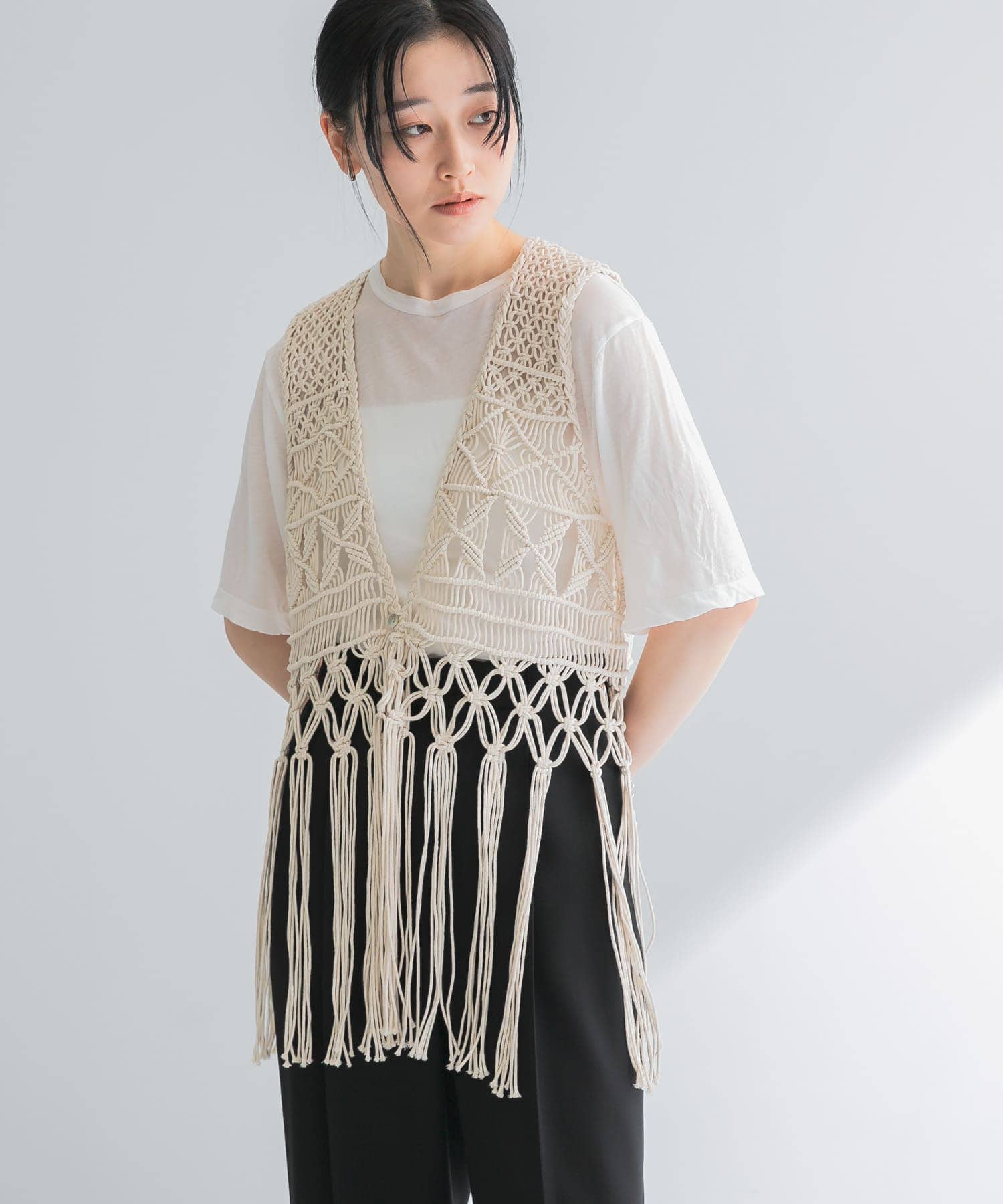 URBAN RESEARCHマクラメ編みハンドニットベスト- 着用カラー: