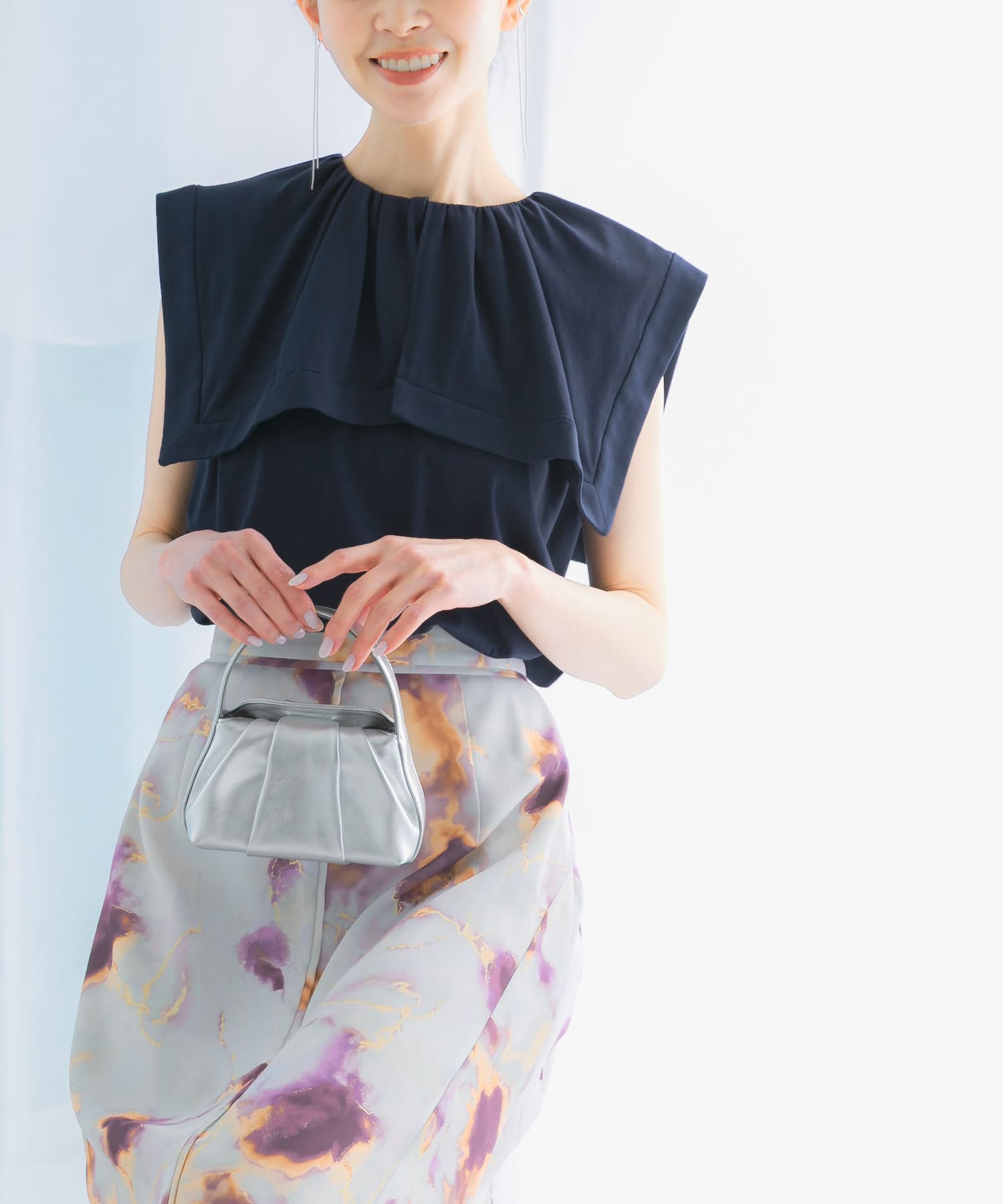 ノースリーブなのに襟のデザインでさりげなく腕周りをカバー◎