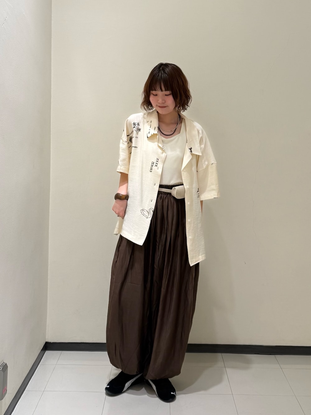 中に合わせたブラウスは、シャーリングの立体感で甘さを足してくれるアイテム。