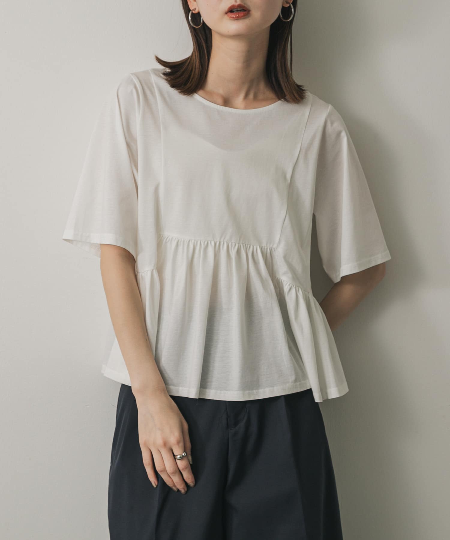 クルーネックペプラムフリルトップ