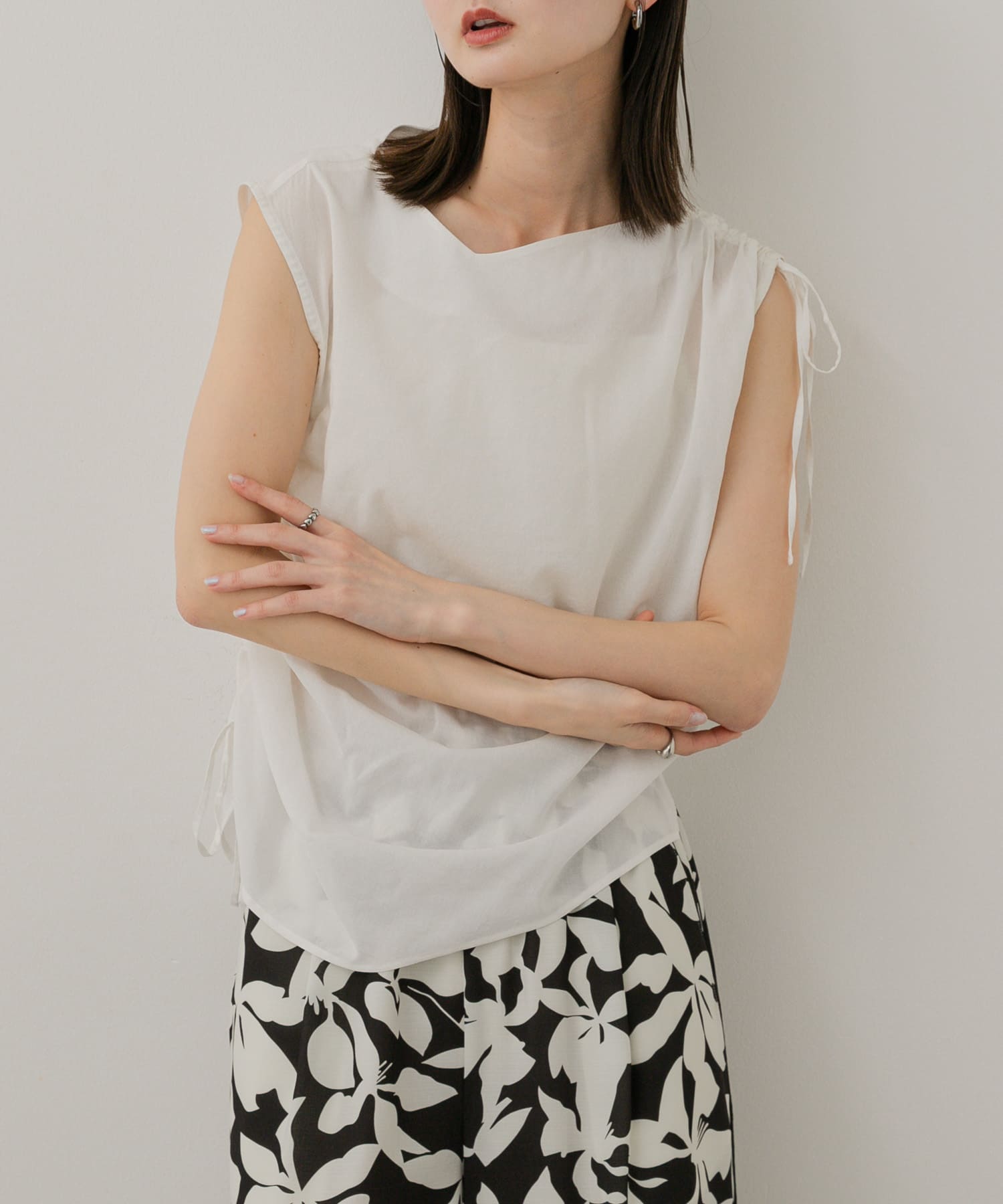 SENSE OF PLACEアシンメトリーシャーリングトップ- カラー: