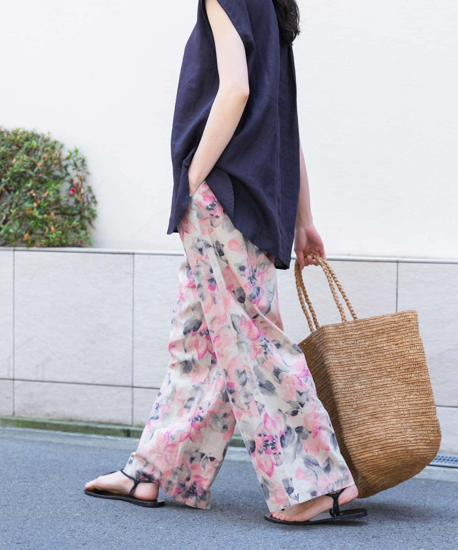 かぐれコットンリネンプリントイージーパンツ- カラー: