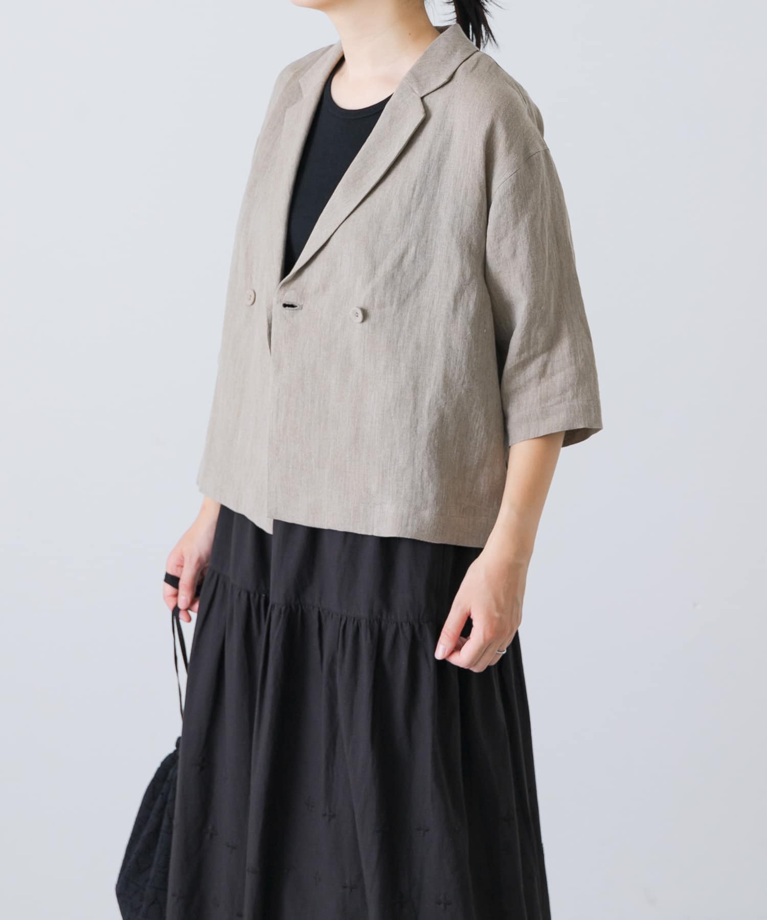 リネン素材の半袖ジャケットは、日増しに暑くなる初夏の季節にぴったりです!