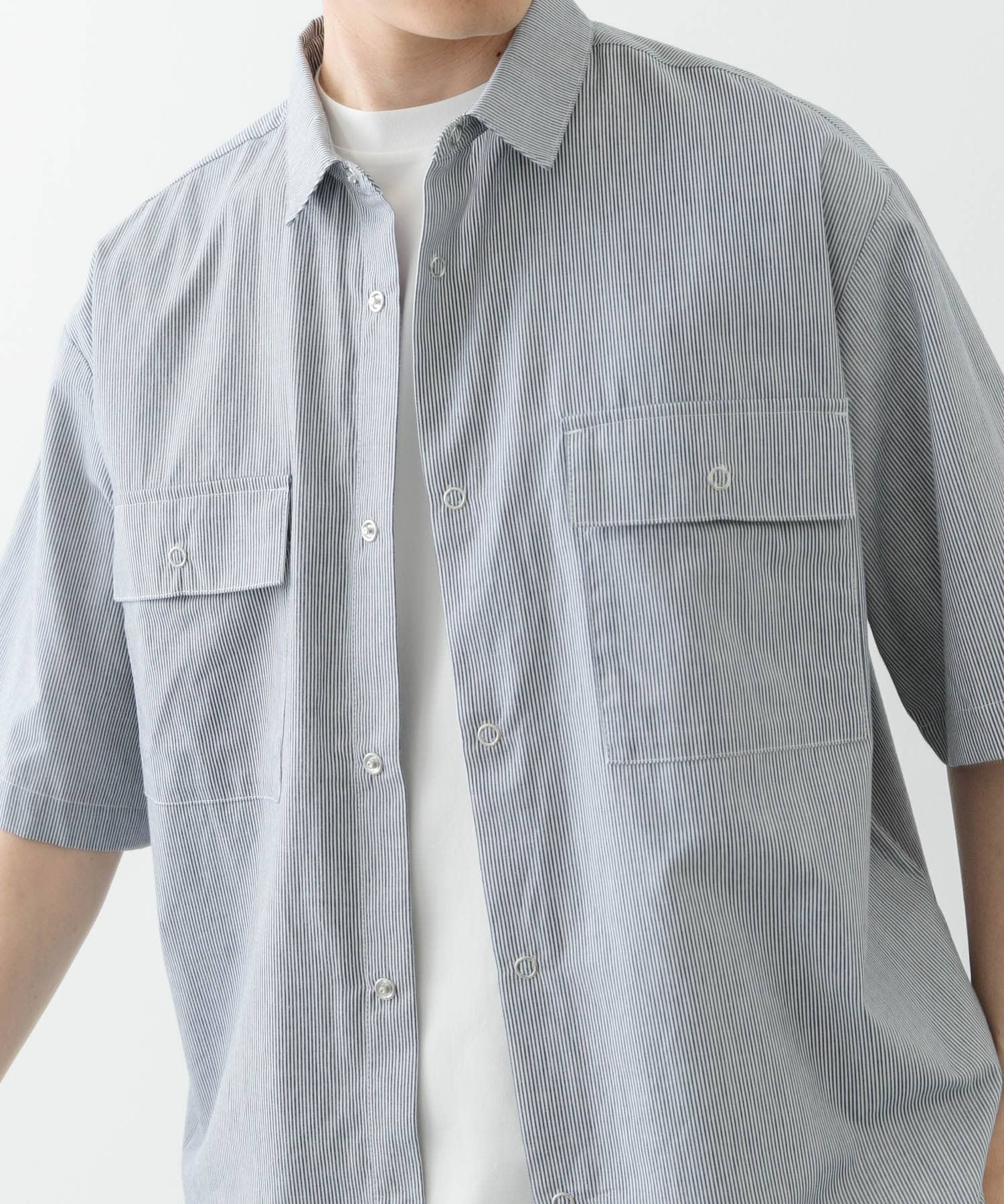 清涼感のあるデザインのストライプシャツ。